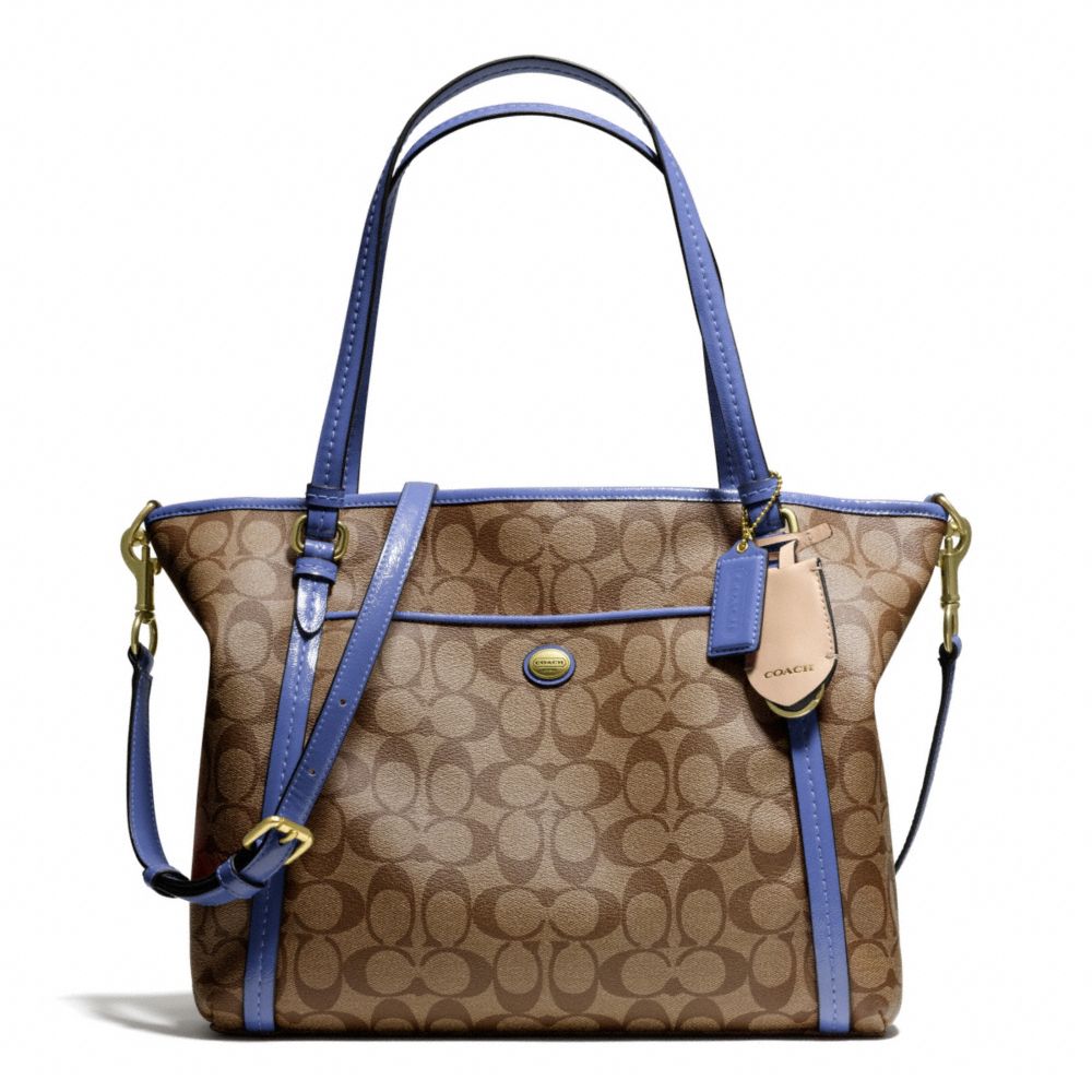 COACH FACTORY OUTLET PRICE CHART - F25504 - PEYTON SIGNATURE POCKET TOTE - BRASS/KHAKI/PORCELAIN BLUE