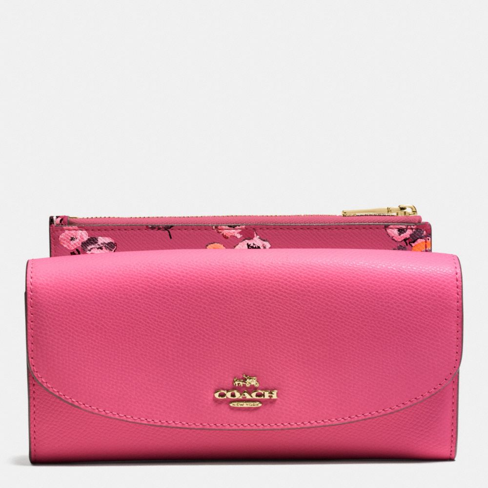 COACH FACTORY OUTLET PRICE CHART - F53771 - POP SLIM ENVELOPE IN WILDFLOWER PRINT CROSSGRAIN LEATHER - IMITATION GOLD/DAHLIA