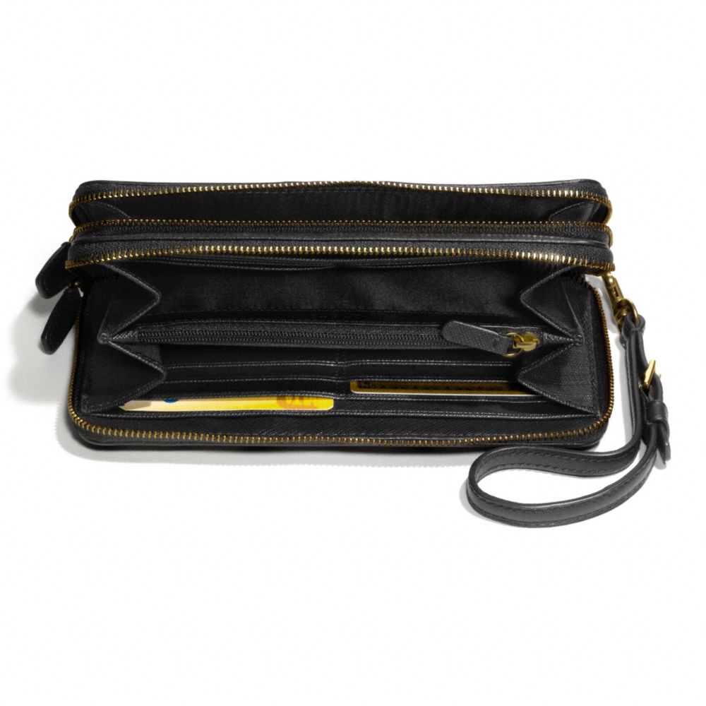 PRINTED SIGNATURE DOUBLE ZIP ACCORDION WALLET (COACH F50500)