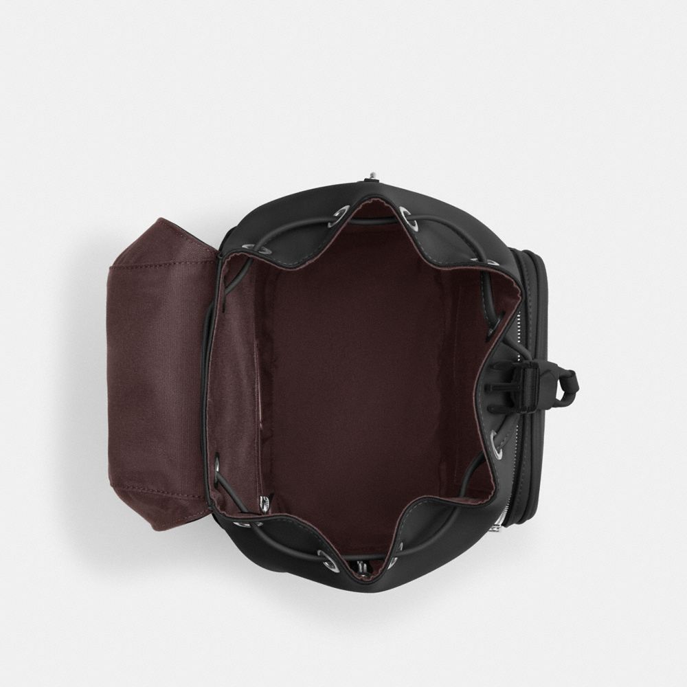 | Refined calf leather | Inside zip and multifunction pockets | Drawstring and speedclip closures, fabric lining | Handle with 3" drop | Outside zip pocket | Outside zip access to interior | Adjustable shoulder straps | 8 3/4" (L) x 9 1/2" (H) x 5 1/4" (W)|Style No. CR100|