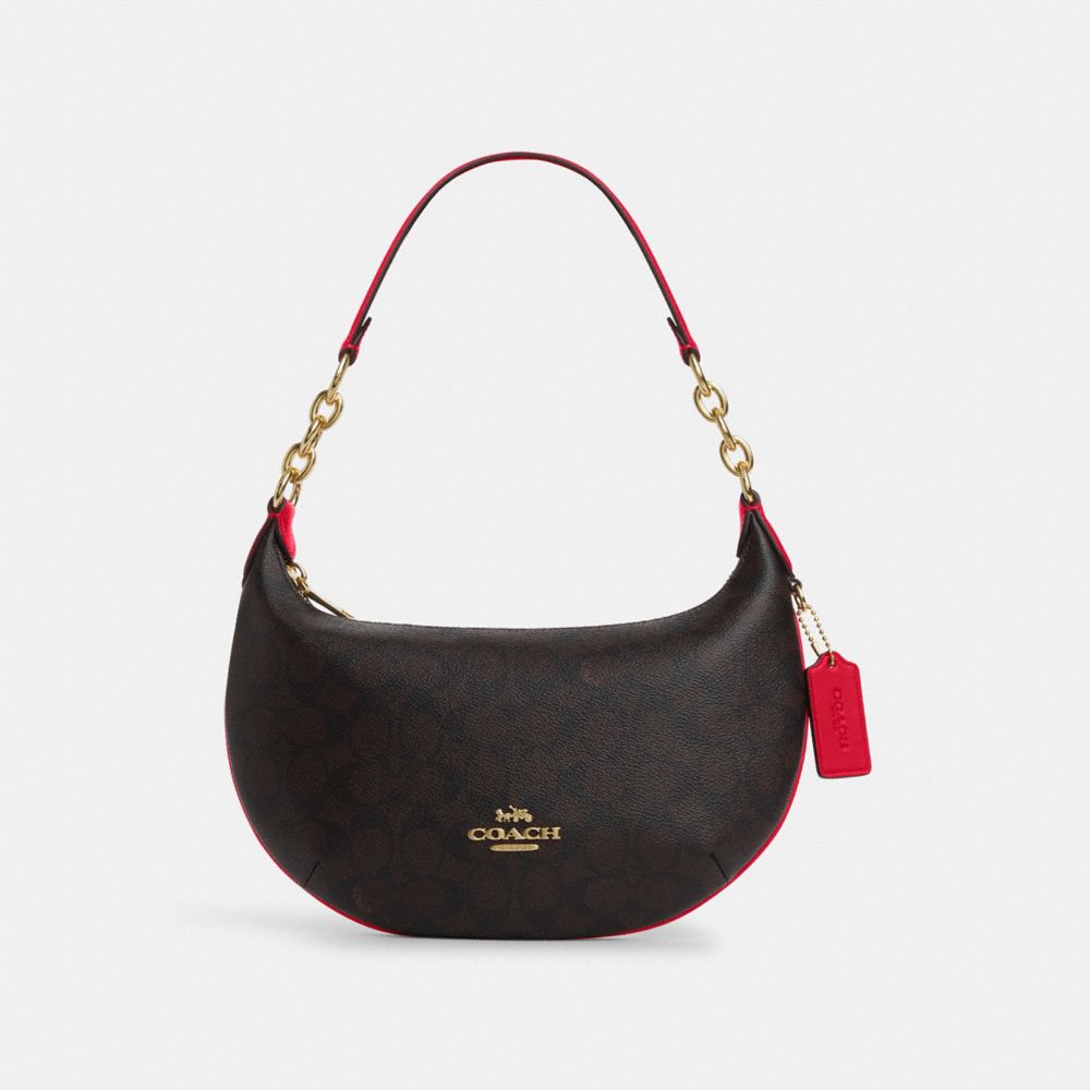 COACH FACTORY OUTLET PRICE CHART - CX811 - PAYTON HOBO BAG IN SIGNATURE CANVAS - GOLD/WALNUT/BOLD RED