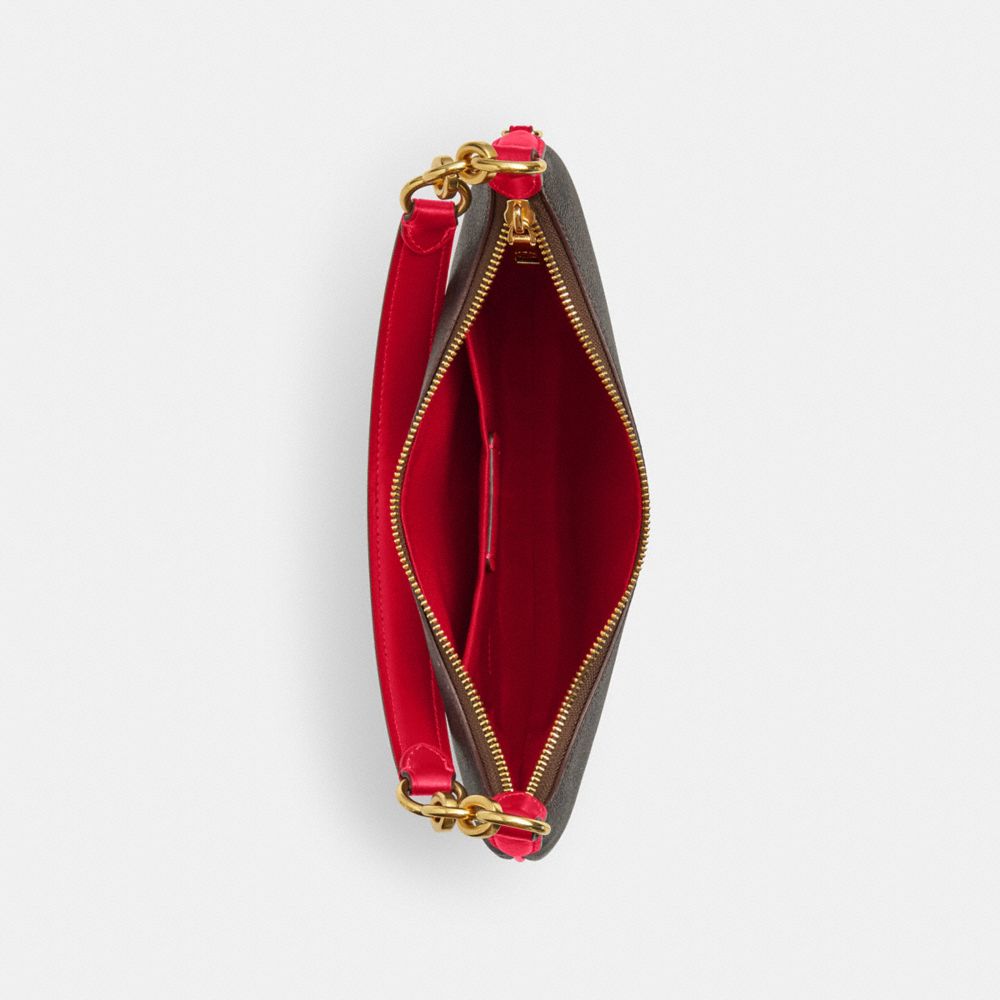 | Signature coated canvas and smooth leather | Inside multifunction pocket | Zip-top closure, fabric lining | Strap with 8 1/4" drop | 10 3/4" (L) x 6 1/4" (H) x 1" (W)|Style No. CX811|
