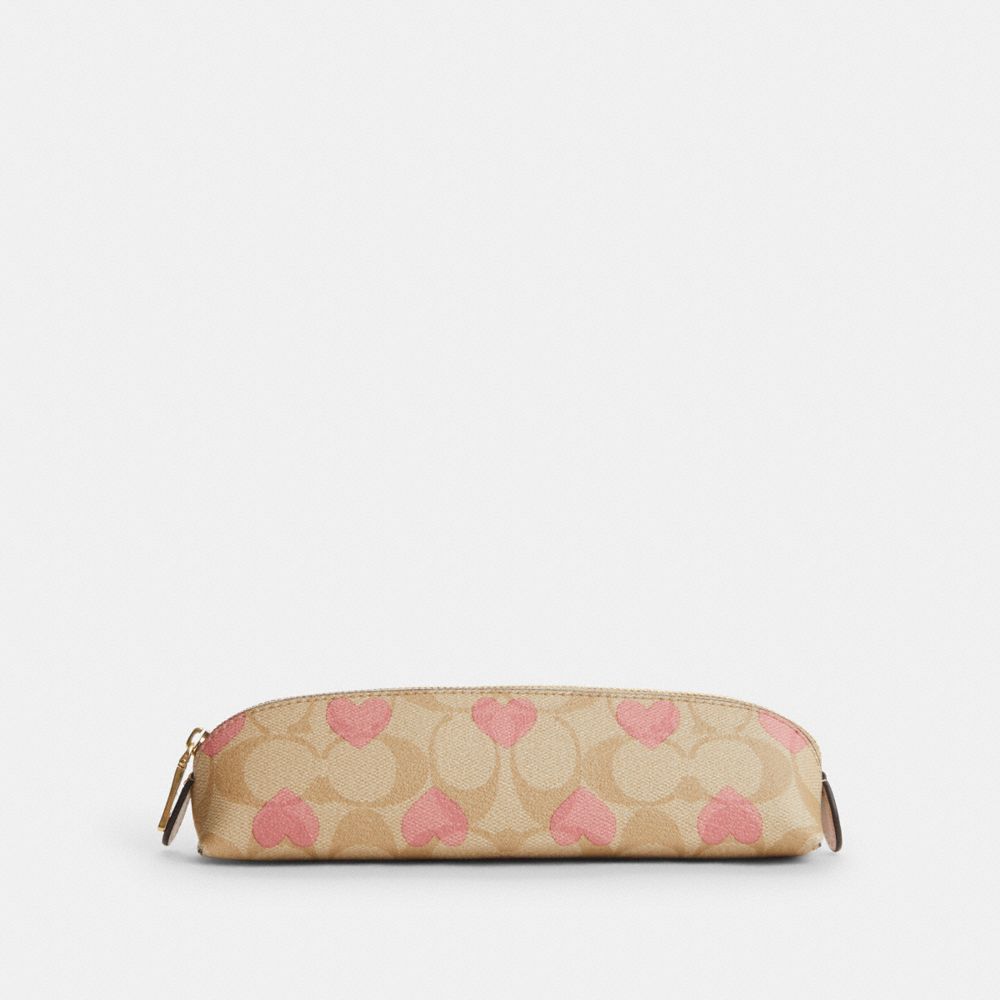 COACH FACTORY OUTLET PRICE CHART - CP380 - PENCIL CASE IN SIGNATURE CANVAS WITH HEART PRINT - GOLD/LIGHT KHAKI CHALK MULTI