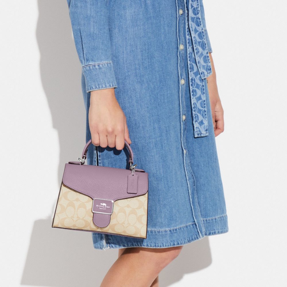 COACH FACTORY OUTLET PRICE CHART - CA233 - PEPPER SATCHEL IN SIGNATURE CANVAS - SILVER/LIGHT KHAKI/SOFT LILAC