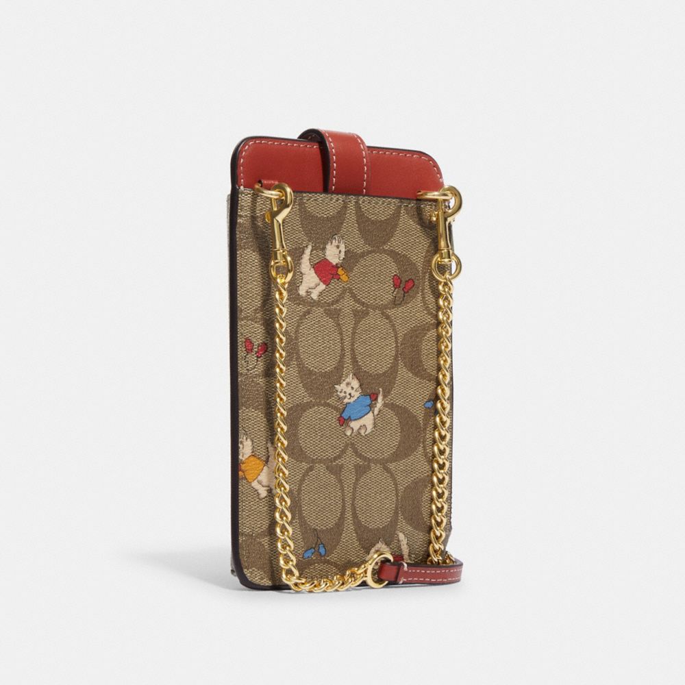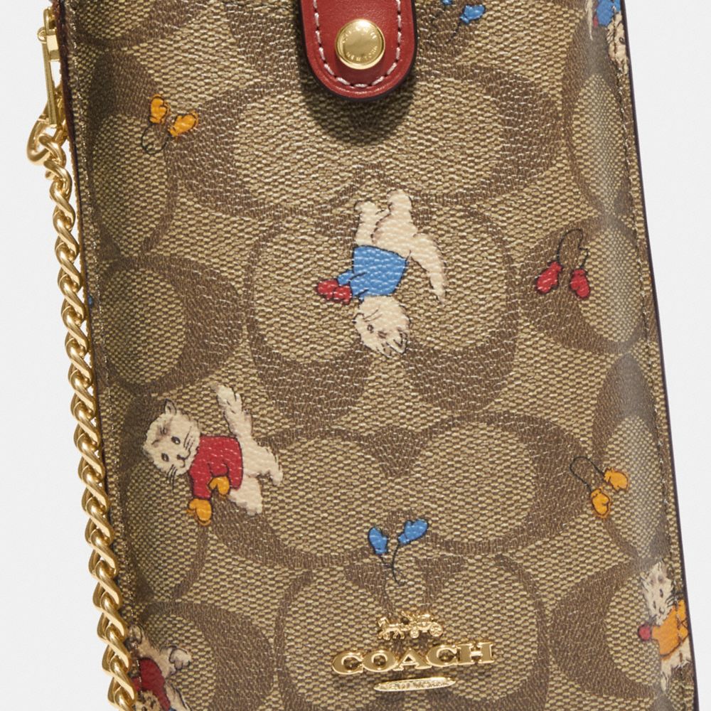 COACH FACTORY OUTLET PRICE CHART - CF313 - PHONE CROSSBODY IN SIGNATURE CANVAS WITH CAT MITTENS PRINT - GOLD/KHAKI MULTI