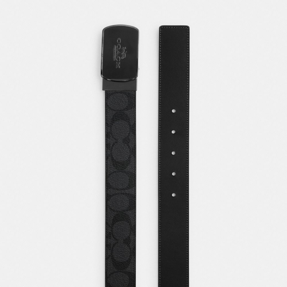 COACH FACTORY OUTLET PRICE CHART - CU210 - PLAQUE BUCKLE CUT TO SIZE REVERSIBLE BELT, 38 MM - GUNMETAL/CHARCOAL/BLACK