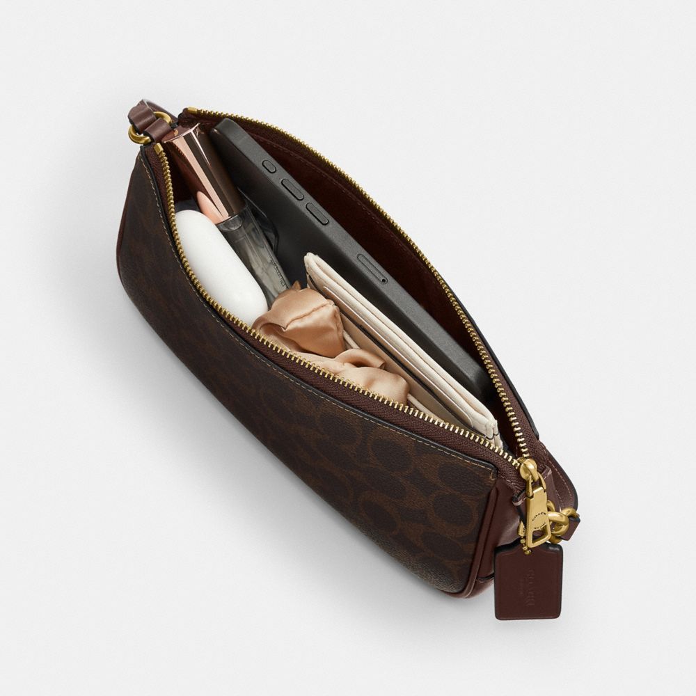 Signature coated canvas and refined calf leather| Zip-top closure, fabric lining| Handle with 7 3/4" drop| 8 1/4" (L) x 4 3/4" (H) x 1 3/4" (W)|Style No. CCC42