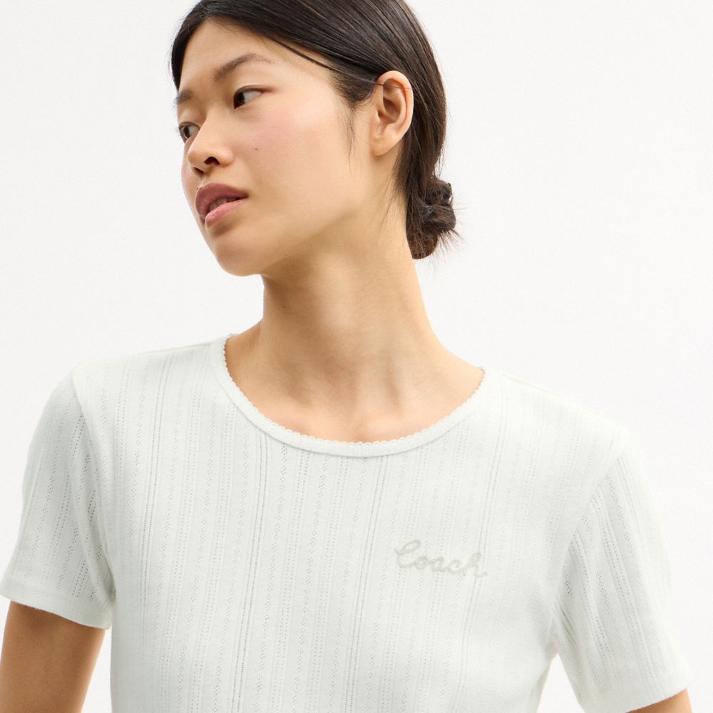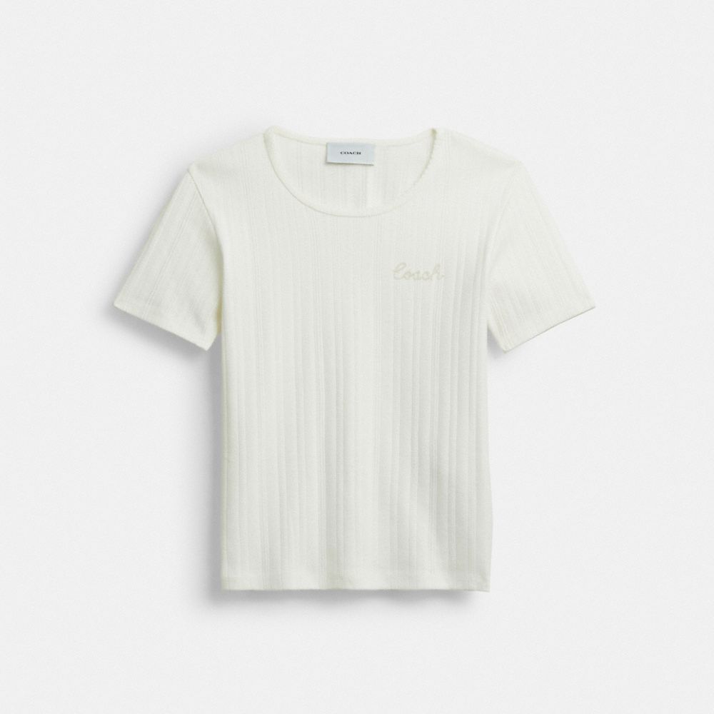 COACH FACTORY OUTLET PRICE CHART - CDT56 - POINTELLE T-SHIRT - OFF WHITE