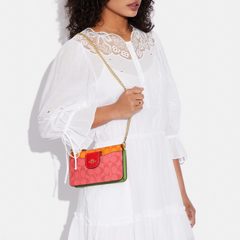 COACH FACTORY OUTLET PRICE CHART - CA864 - POPPY CROSSBODY WITH CARD CASE IN BLOCKED SIGNATURE CANVAS - GOLD/PINK LEMONADE MULTI