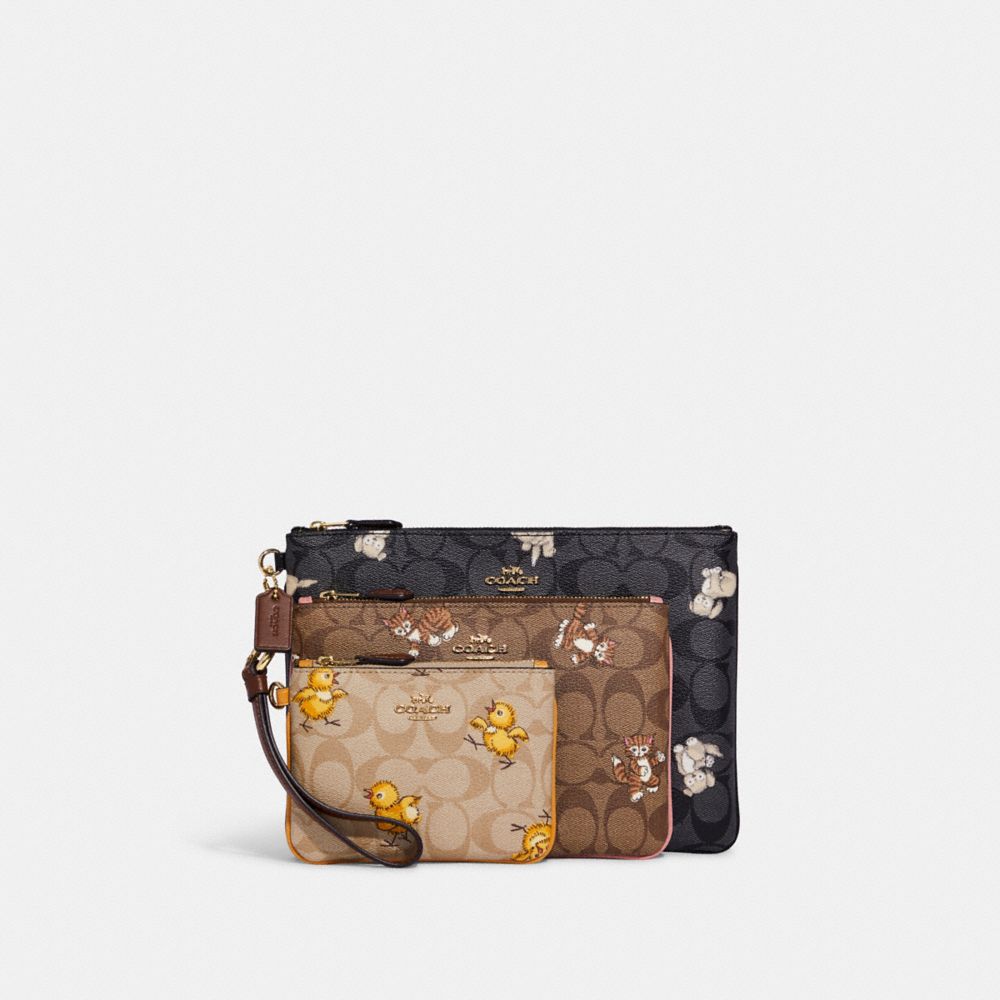 POUCH TRIO IN SIGNATURE CANVAS WITH CREATURE PRINT (COACH CC930)