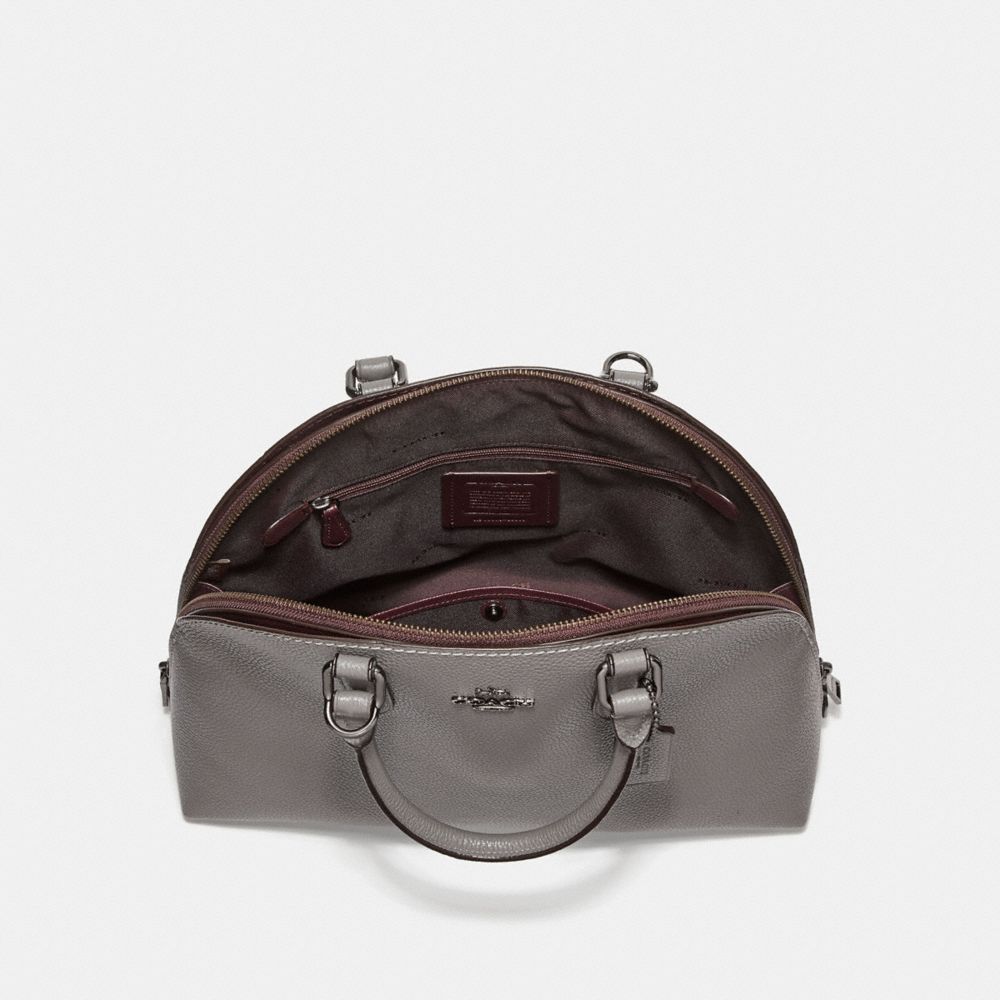 Polished pebble leather| Inside zip and snap pockets| Zip closure, fabric lining| Side slip pockets| Handles with 4 1/4" drop| Detachable strap with 21" length for shoulder or crossbody wear| Compatible with Coach interchangeable straps| 13" (L) x 9 1/4" (H) x 5 1/4" (W)