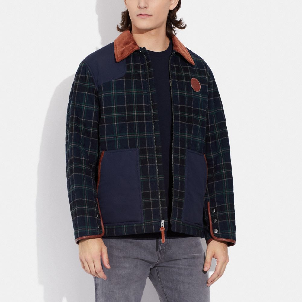 COACH FACTORY OUTLET PRICE CHART - CB668 - QUILTED PLAID JACKET - NAVY/GREEN MULTI