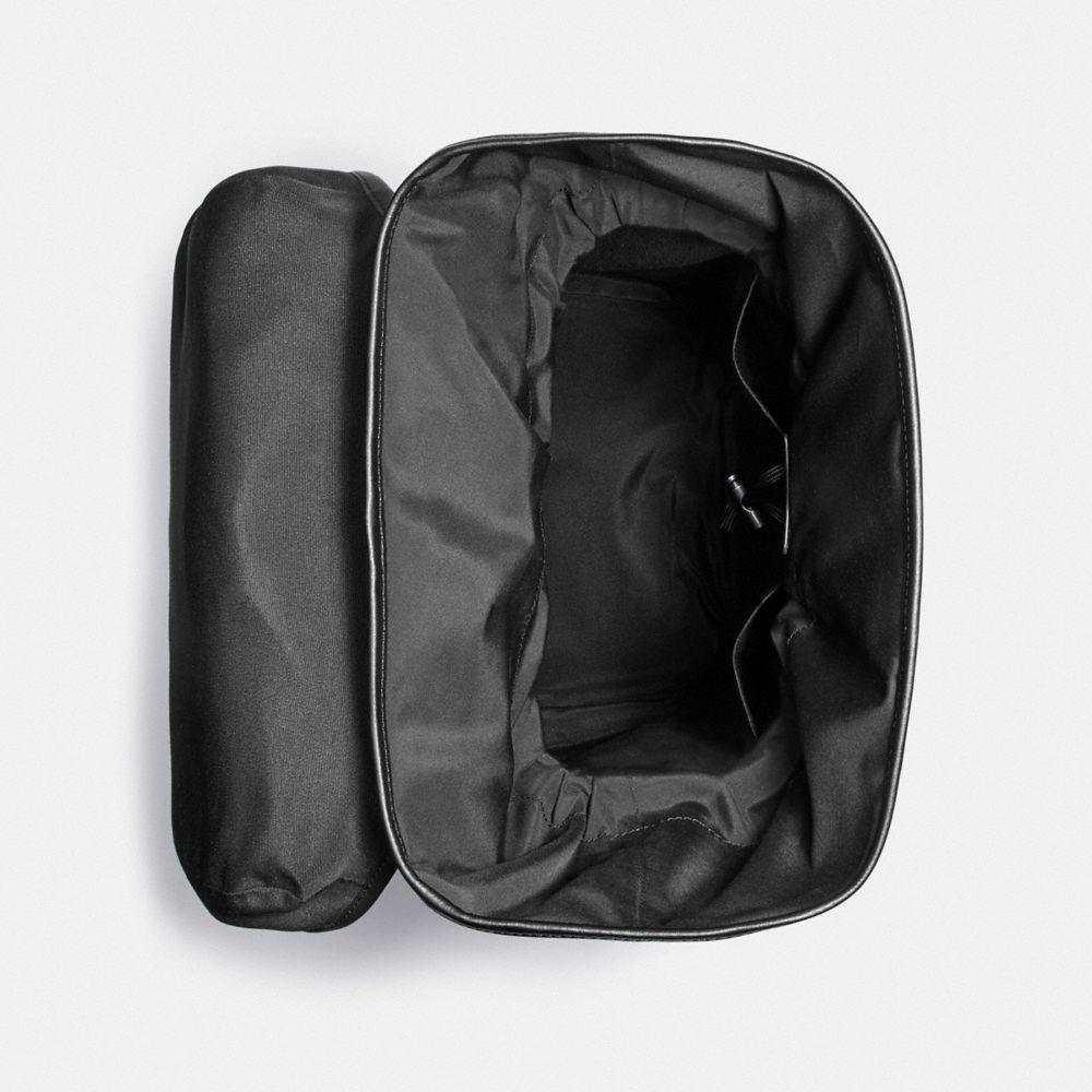 Signature coated canvas, smooth calf leather and nylon| Inside zip, cell phone and multifunction pockets| Inside laptop sleeve with secure tab| Drawstring and speedclip closures, fabric lining| Top handle with 2 1/4" drop| Outside zip pockets| Adjustable shoulder straps| 10 1/2" (L) x 18" (H) x 6" (W)