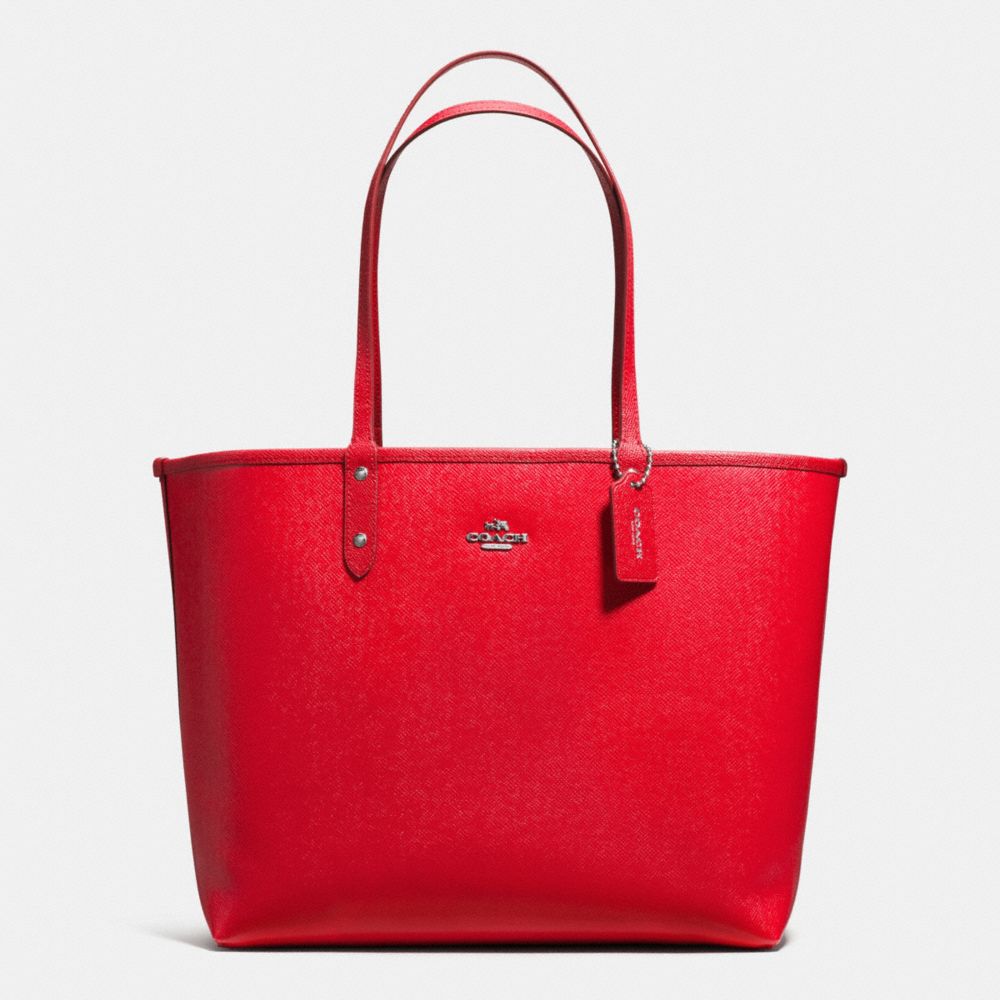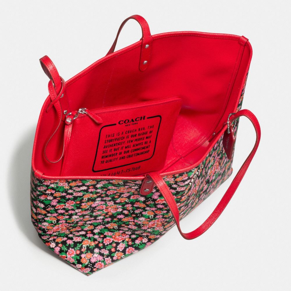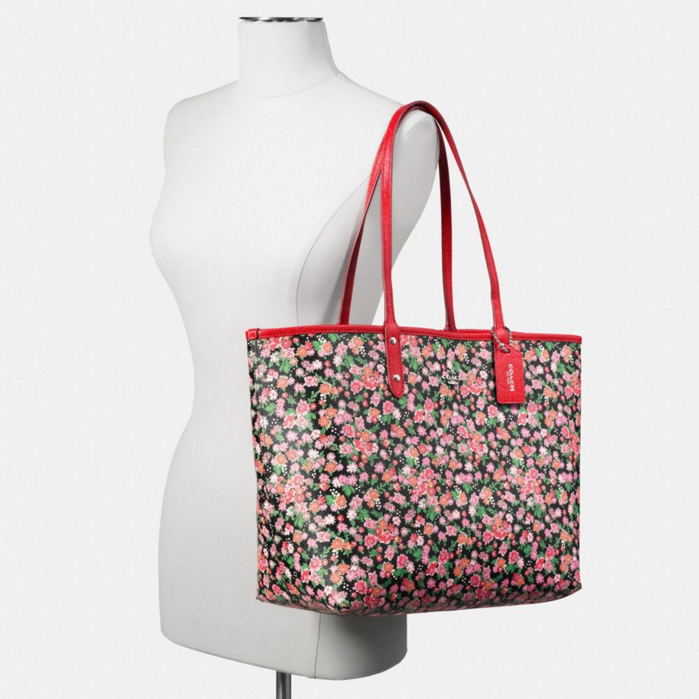 COACH FACTORY OUTLET PRICE CHART - F57669 - REVERSIBLE CITY TOTE IN POSEY CLUSTER FLORAL PRINT COATED CANVAS - SILVER/PINK MULTI BRIGHT RED