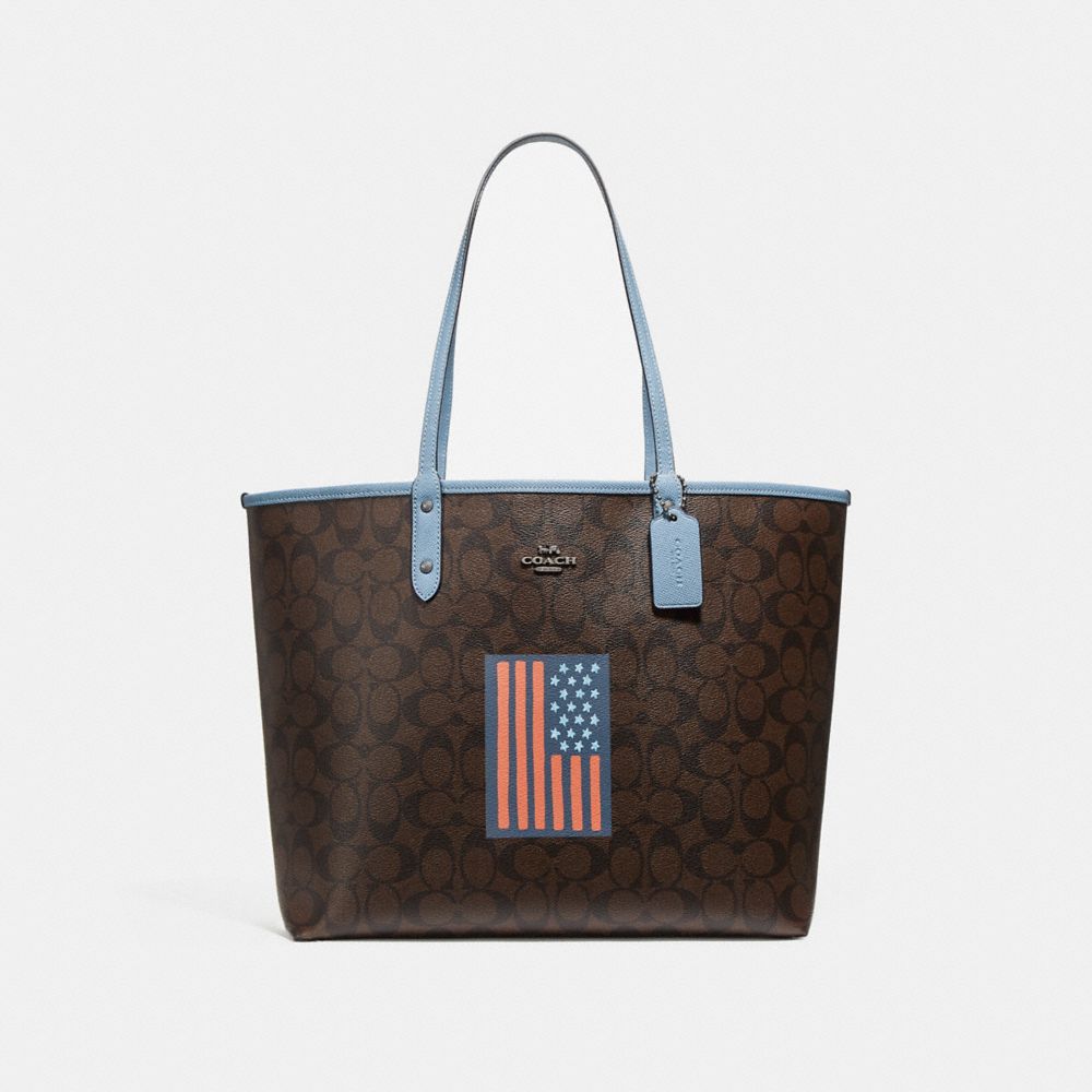 REVERSIBLE CITY TOTE IN SIGNATURE CANVAS WITH FLAG (COACH F25949)