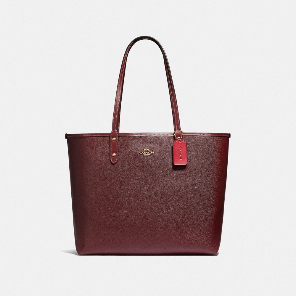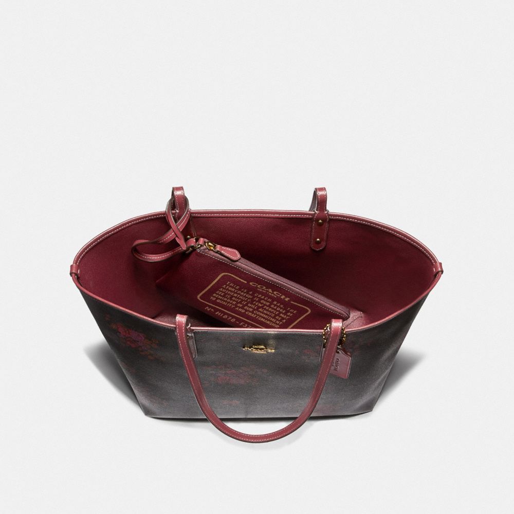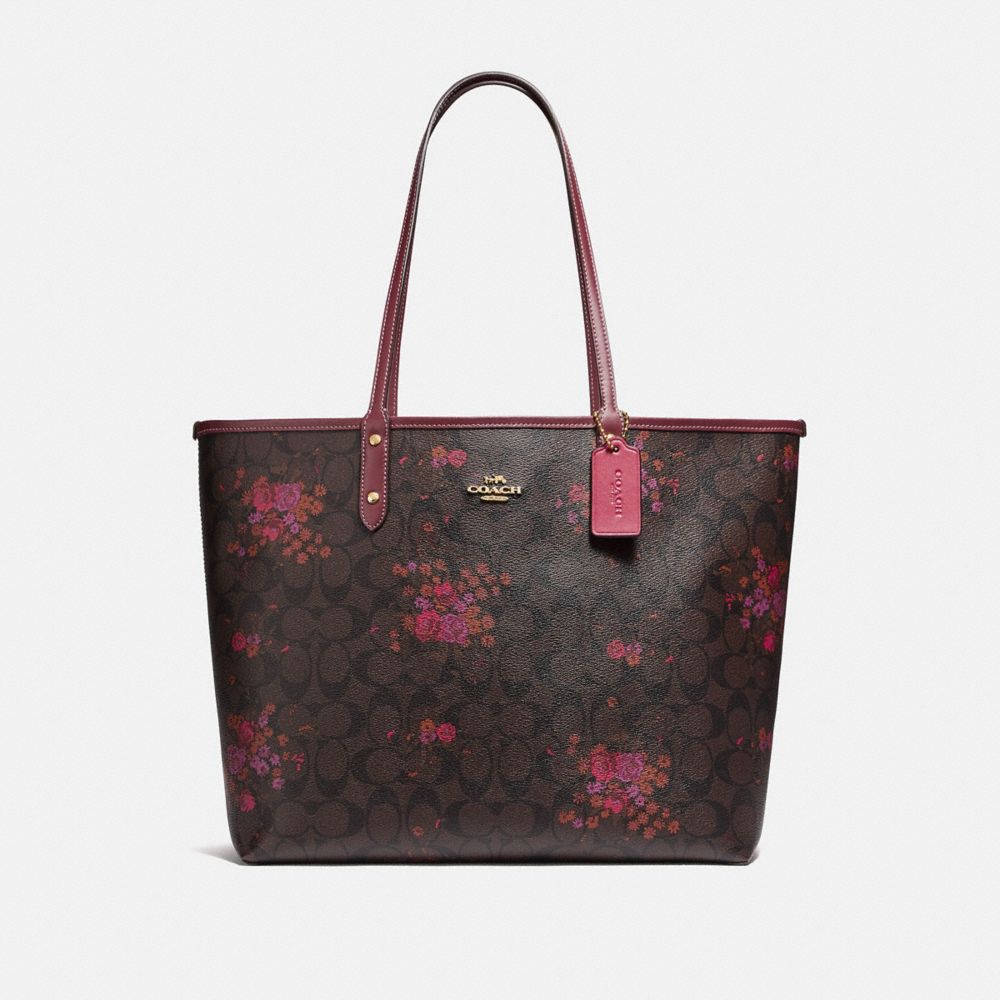 COACH FACTORY OUTLET PRICE CHART - F37807 - REVERSIBLE CITY TOTE IN SIGNATURE CANVAS WITH FLORAL BUNDLE PRINT - BROWN/METALLIC CURRANT/LIGHT GOLD