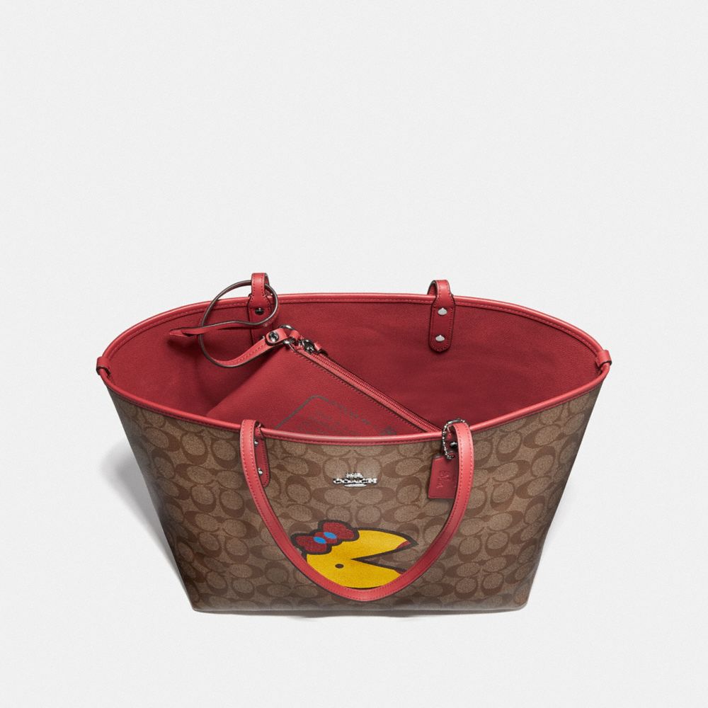 COACH FACTORY OUTLET PRICE CHART - F72900 - REVERSIBLE CITY TOTE IN SIGNATURE CANVAS WITH MS. PAC-MAN - KHAKI MULTI/WASHED RED/SILVER