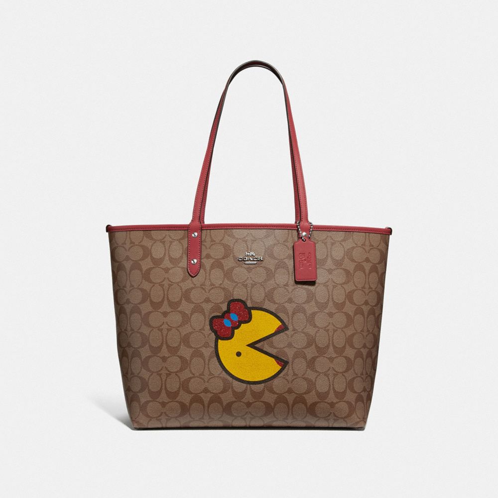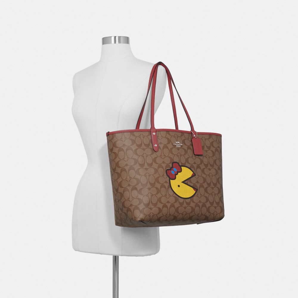REVERSIBLE CITY TOTE IN SIGNATURE CANVAS WITH MS. PAC-MAN (COACH F72900)