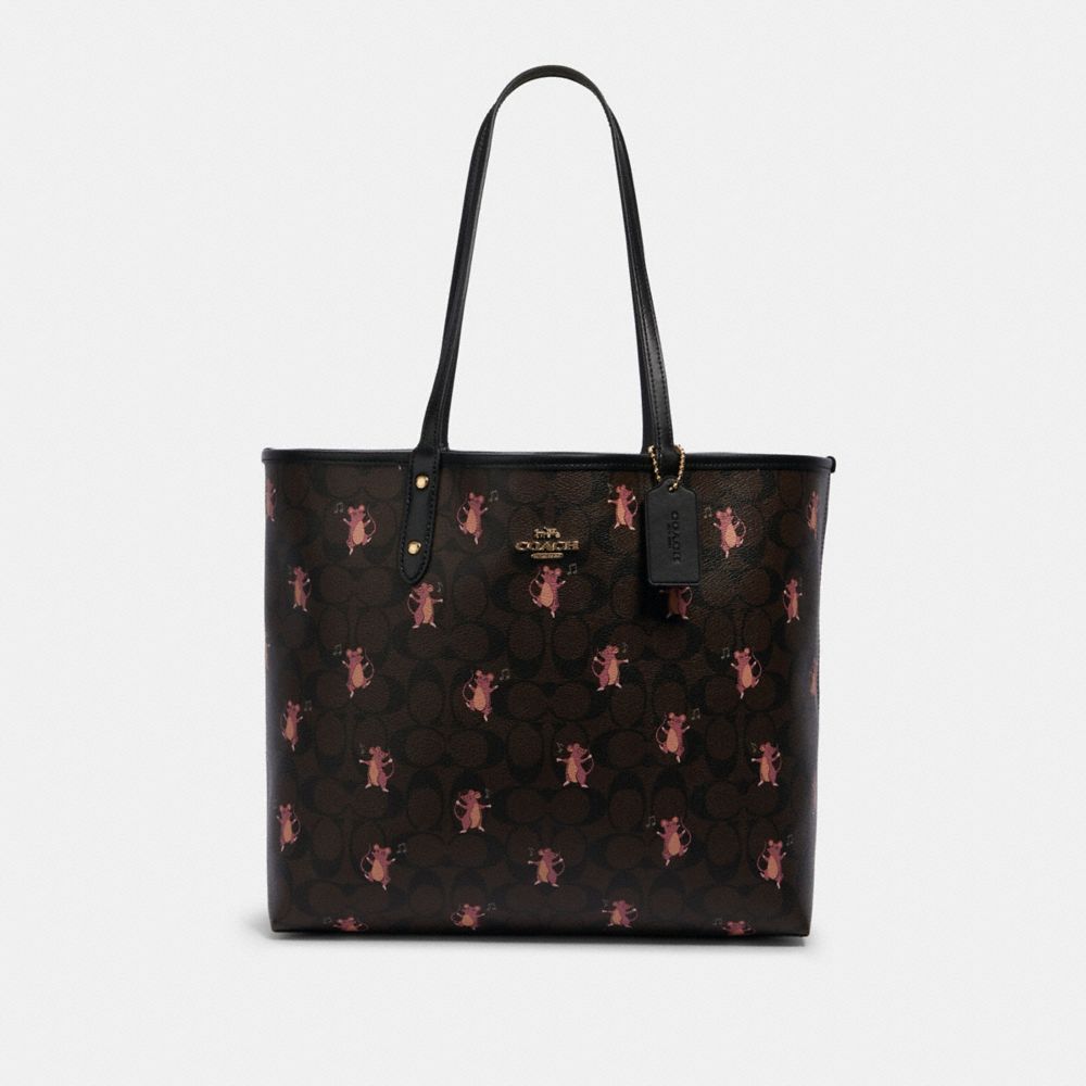 COACH FACTORY OUTLET PRICE CHART - F80231 - REVERSIBLE CITY TOTE IN SIGNATURE CANVAS WITH PARTY MOUSE PRINT - IM/BROWN PINK MULTI/BLACK