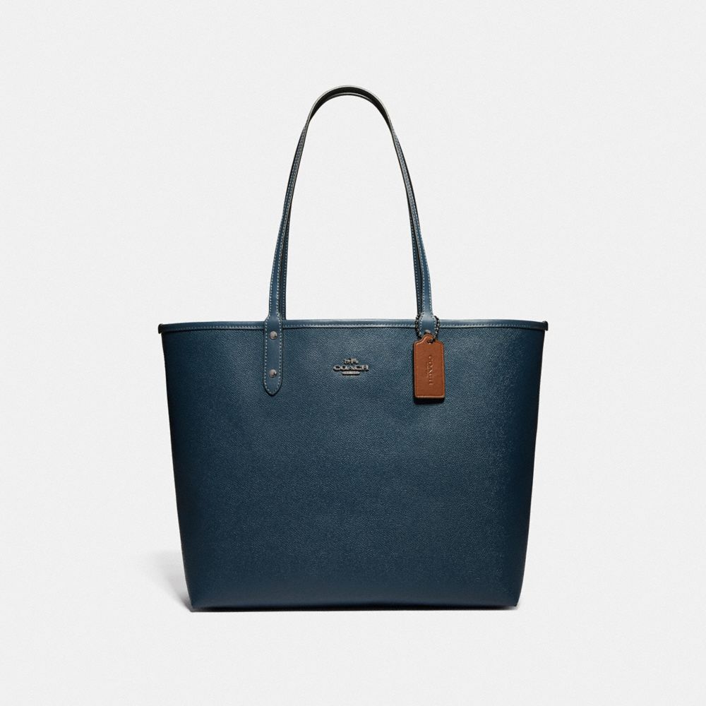 COACH FACTORY OUTLET PRICE CHART - F73324 - REVERSIBLE CITY TOTE IN SIGNATURE CANVAS WITH RAINBOW COACH ANIMATION - KHAKI/DENIM/SILVER