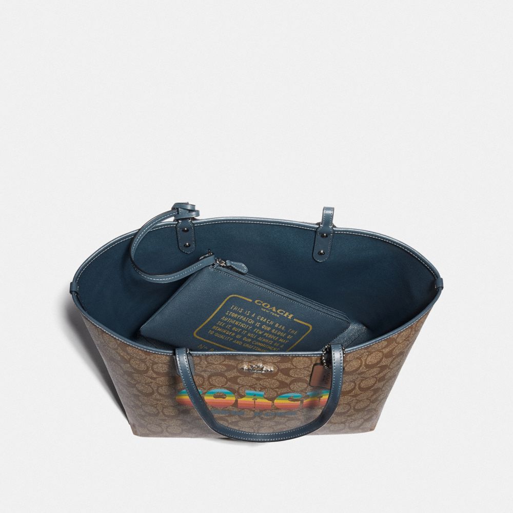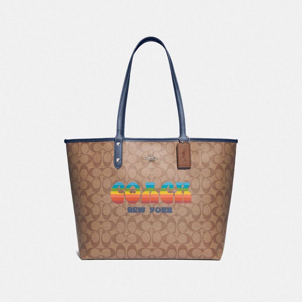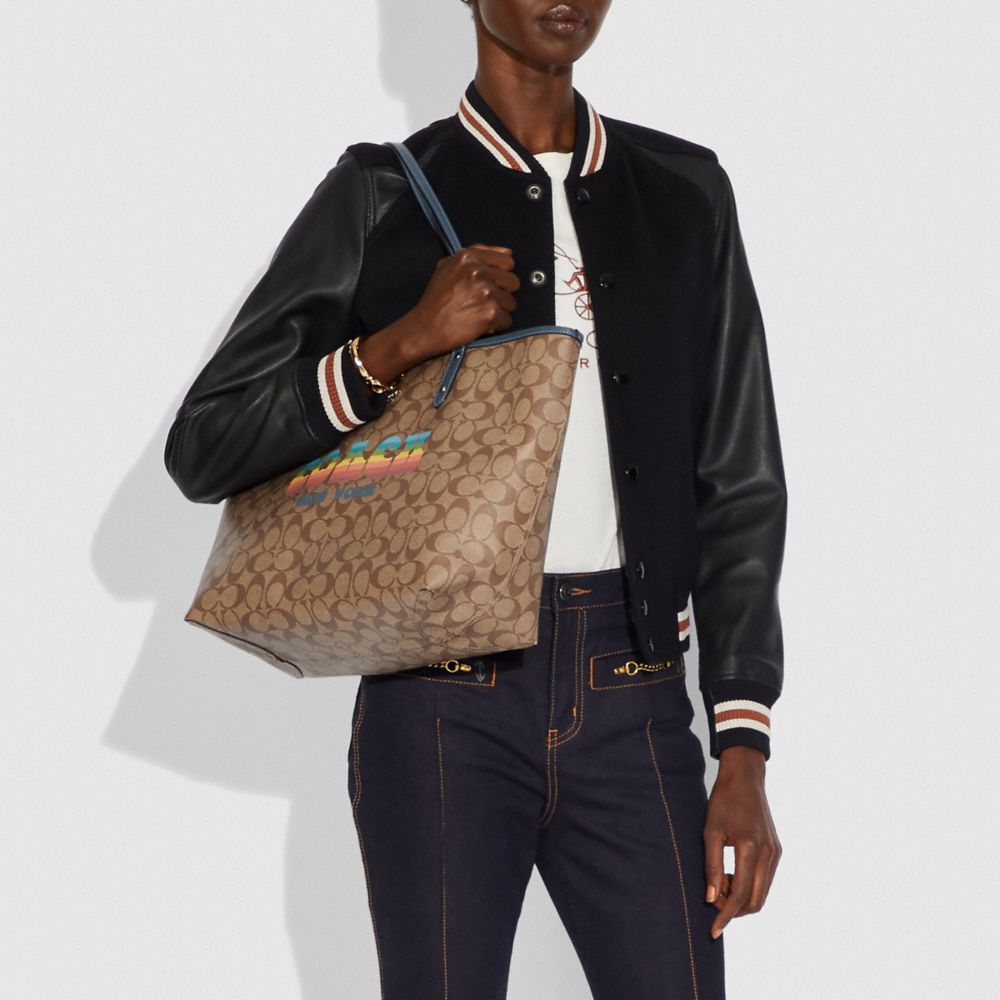 REVERSIBLE CITY TOTE IN SIGNATURE CANVAS WITH RAINBOW COACH ANIMATION (COACH F73324)