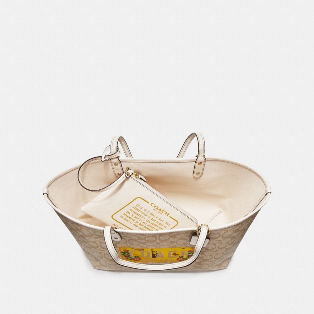 COACH FACTORY OUTLET PRICE CHART - F26920 - REVERSIBLE CITY TOTE IN SIGNATURE CANVAS WITH ROADTRIP MOTIF - LIGHT KHAKI/CHALK/LIGHT GOLD