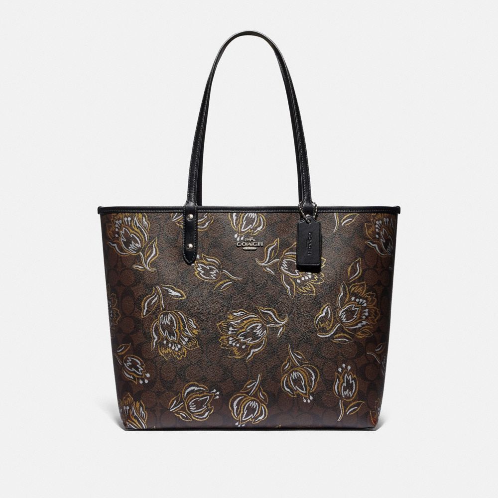 COACH FACTORY OUTLET PRICE CHART - F78282 - REVERSIBLE CITY TOTE IN SIGNATURE CANVAS WITH TULIP PRINT - SV/CHESTNUT METALLIC/BLACK