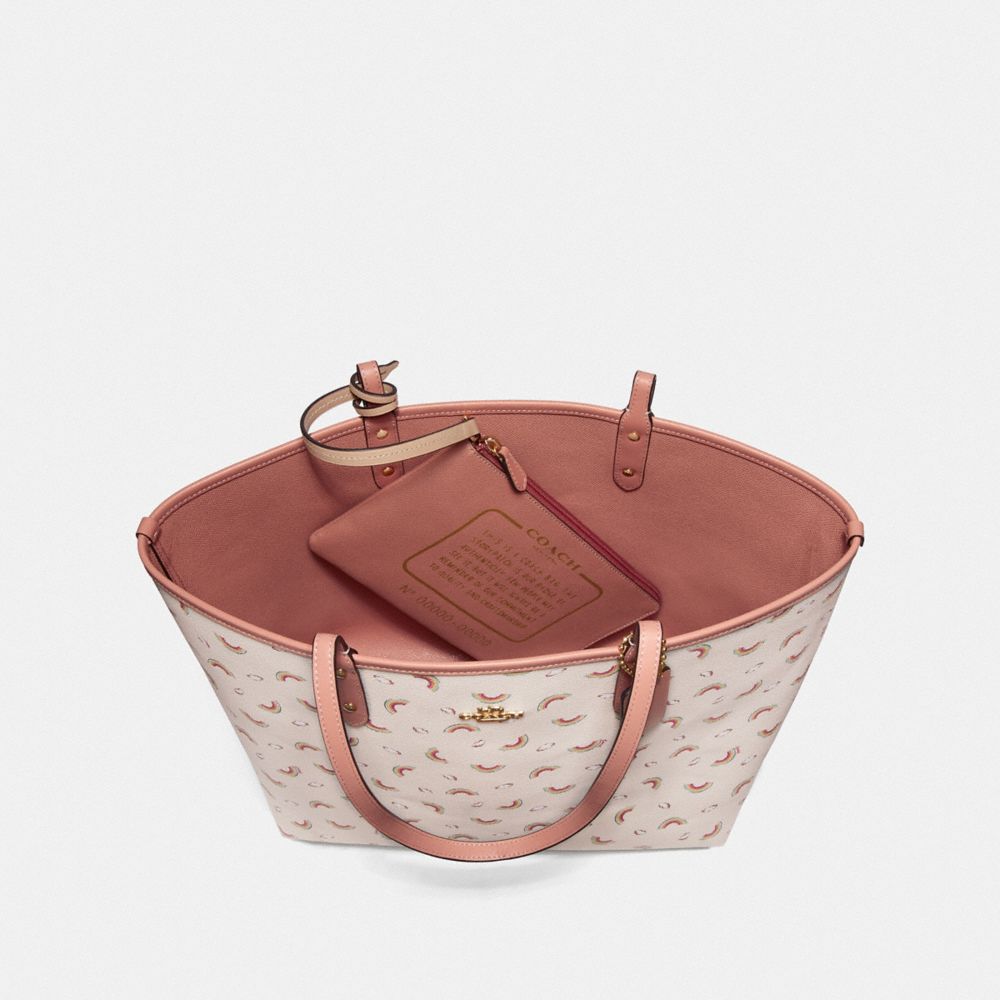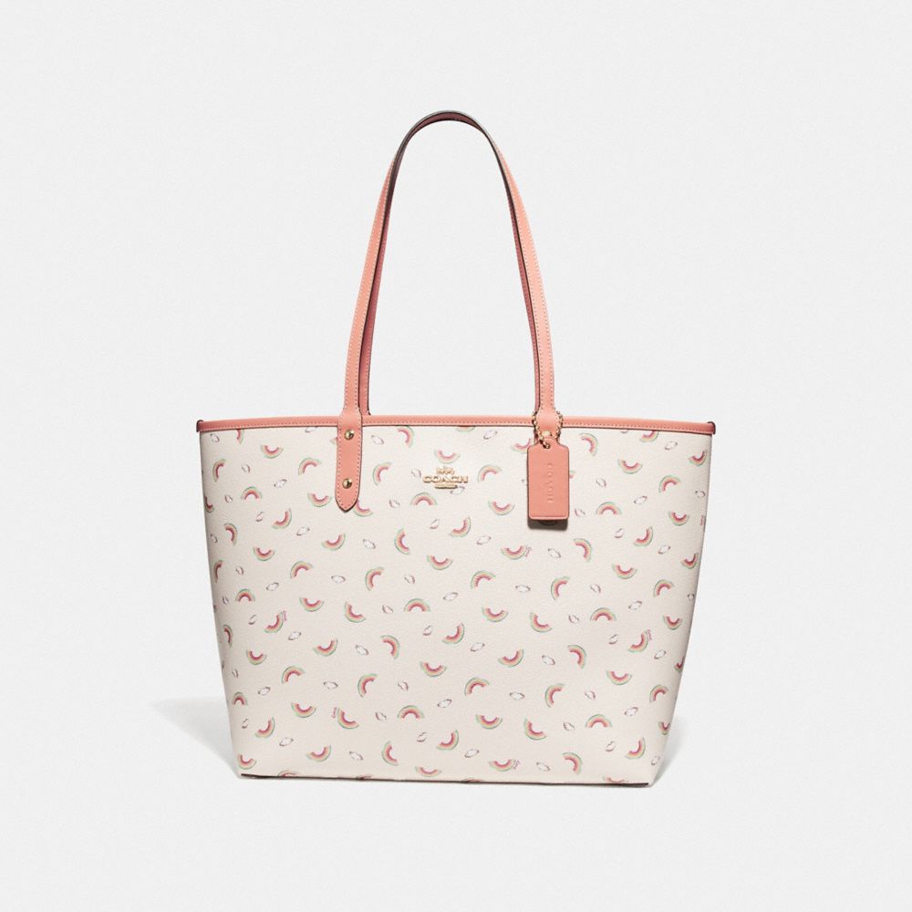 COACH FACTORY OUTLET PRICE CHART - F72720 - REVERSIBLE CITY TOTE WITH ALLOVER RAINBOW PRINT - CHALK/LIGHT CORAL/GOLD