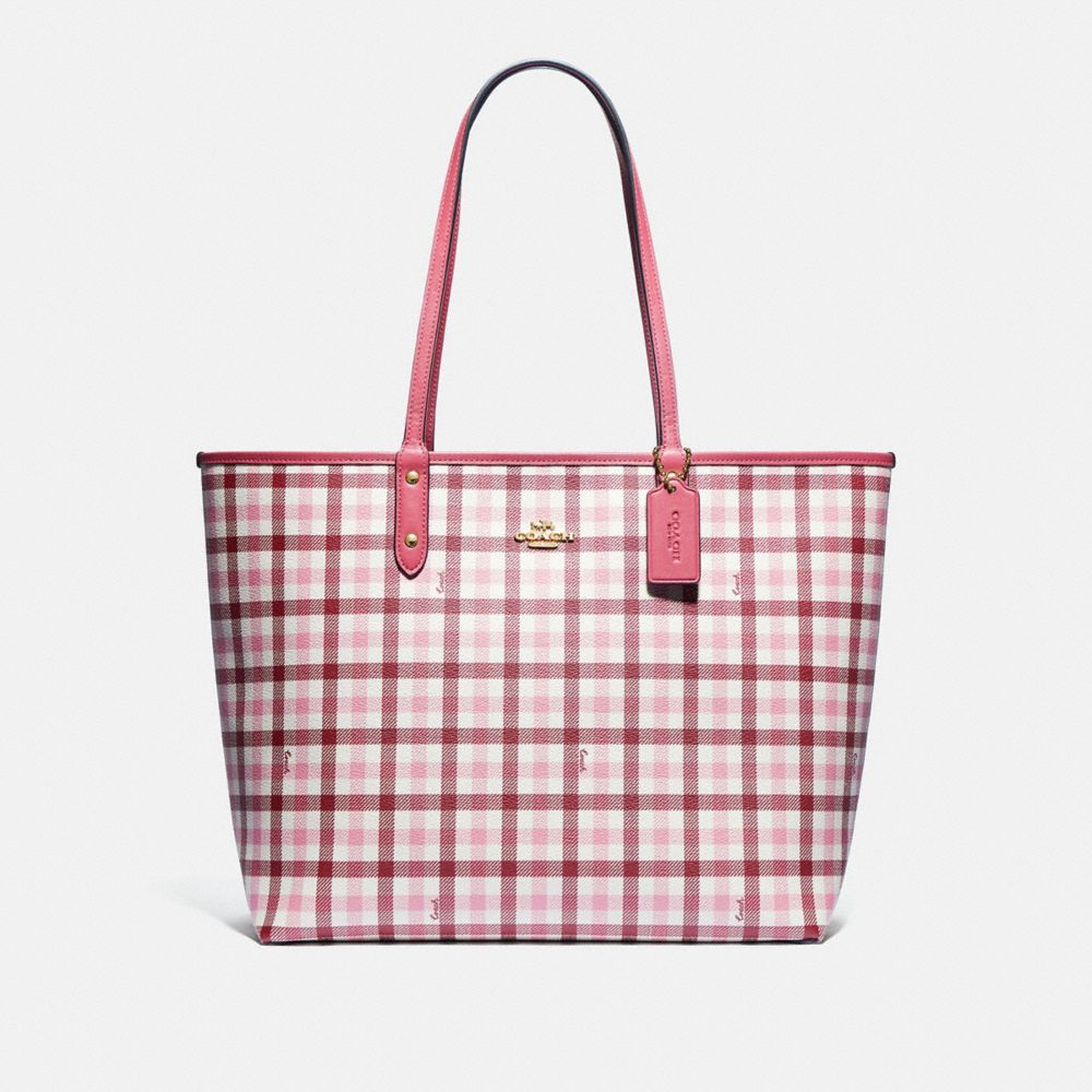 REVERSIBLE CITY TOTE WITH GINGHAM PRINT (COACH F76631)