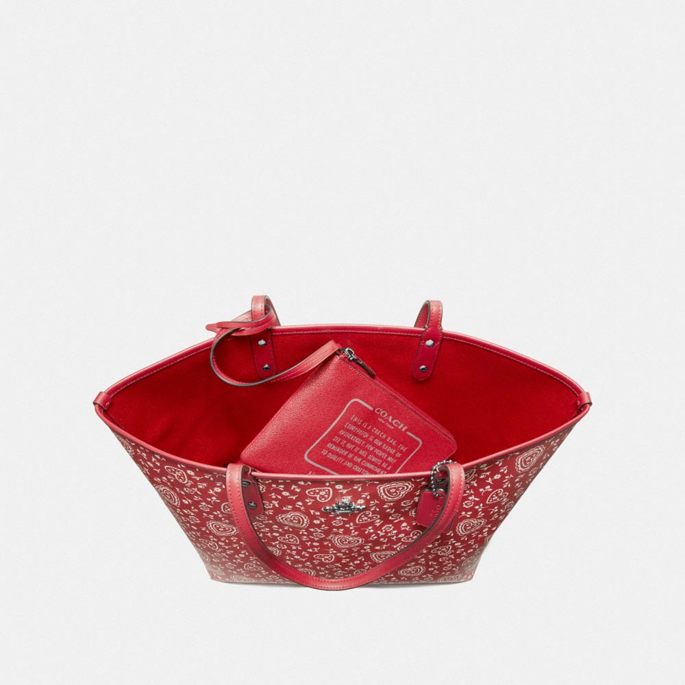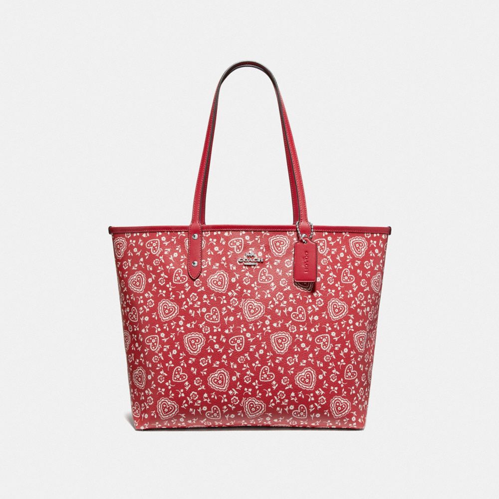 COACH FACTORY OUTLET PRICE CHART - F67482 - REVERSIBLE CITY TOTE WITH LACE HEART PRINT - RED MULTI/RED/SILVER