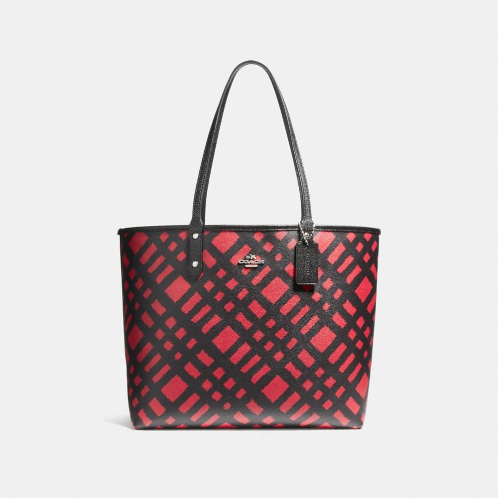 REVERSIBLE CITY TOTE WITH WILD PLAID PRINT (COACH F22247)