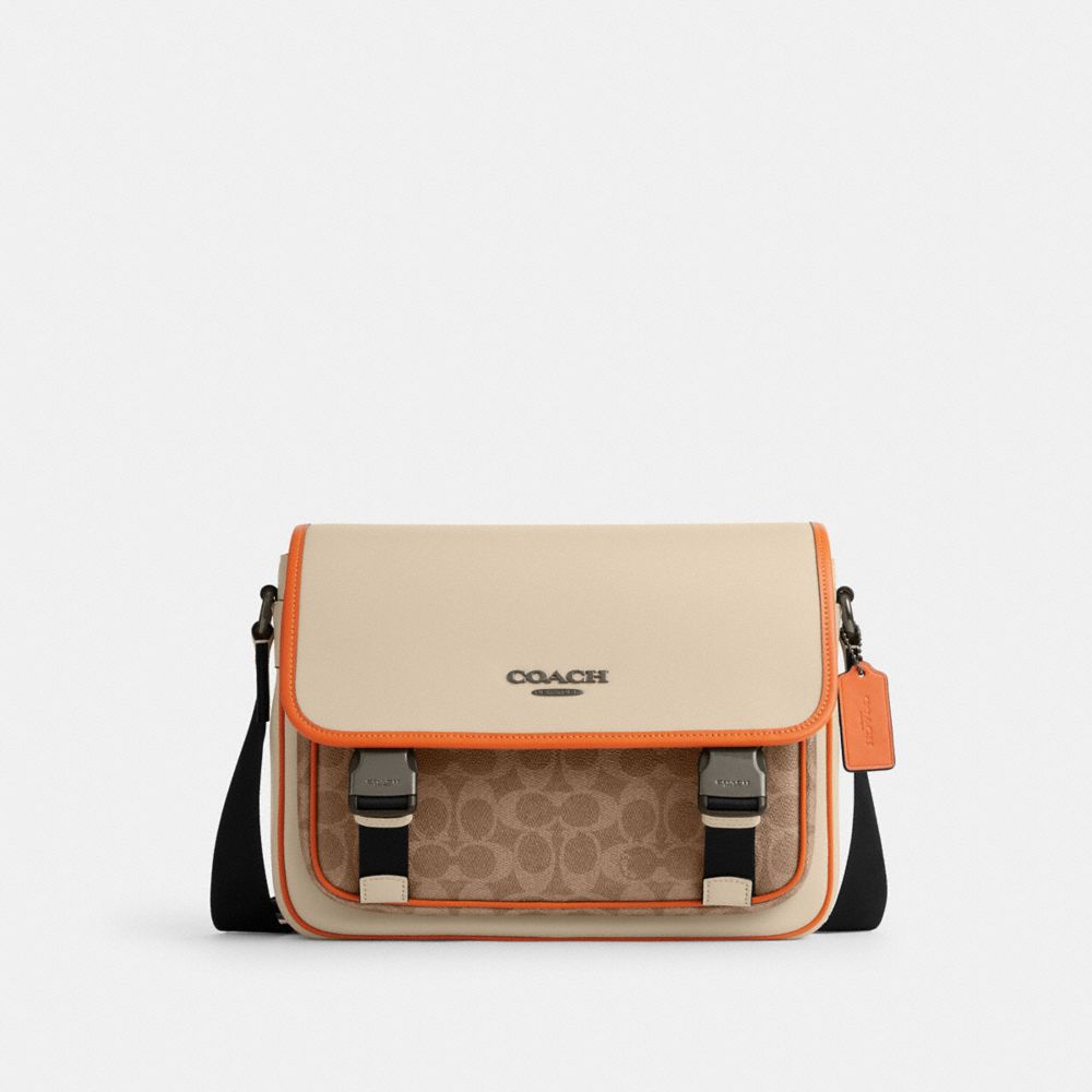 COACH FACTORY OUTLET PRICE CHART - CAJ79 - RACER MESSENGER IN COLORBLOCK SIGNATURE CANVAS - GUNMETAL/IVORY MULTI