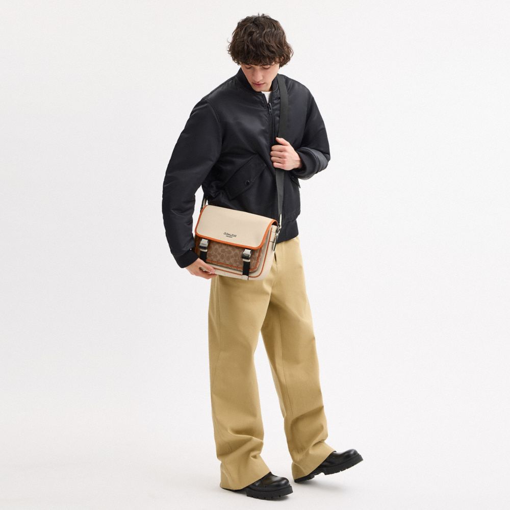 RACER MESSENGER IN COLORBLOCK SIGNATURE CANVAS (COACH CAJ79)