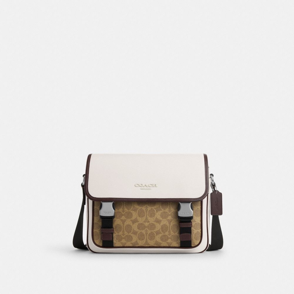 COACH FACTORY OUTLET PRICE CHART - CT753 - RACER MESSENGER IN COLORBLOCK SIGNATURE CANVAS - SV/CHALK/TAN/MAPLE