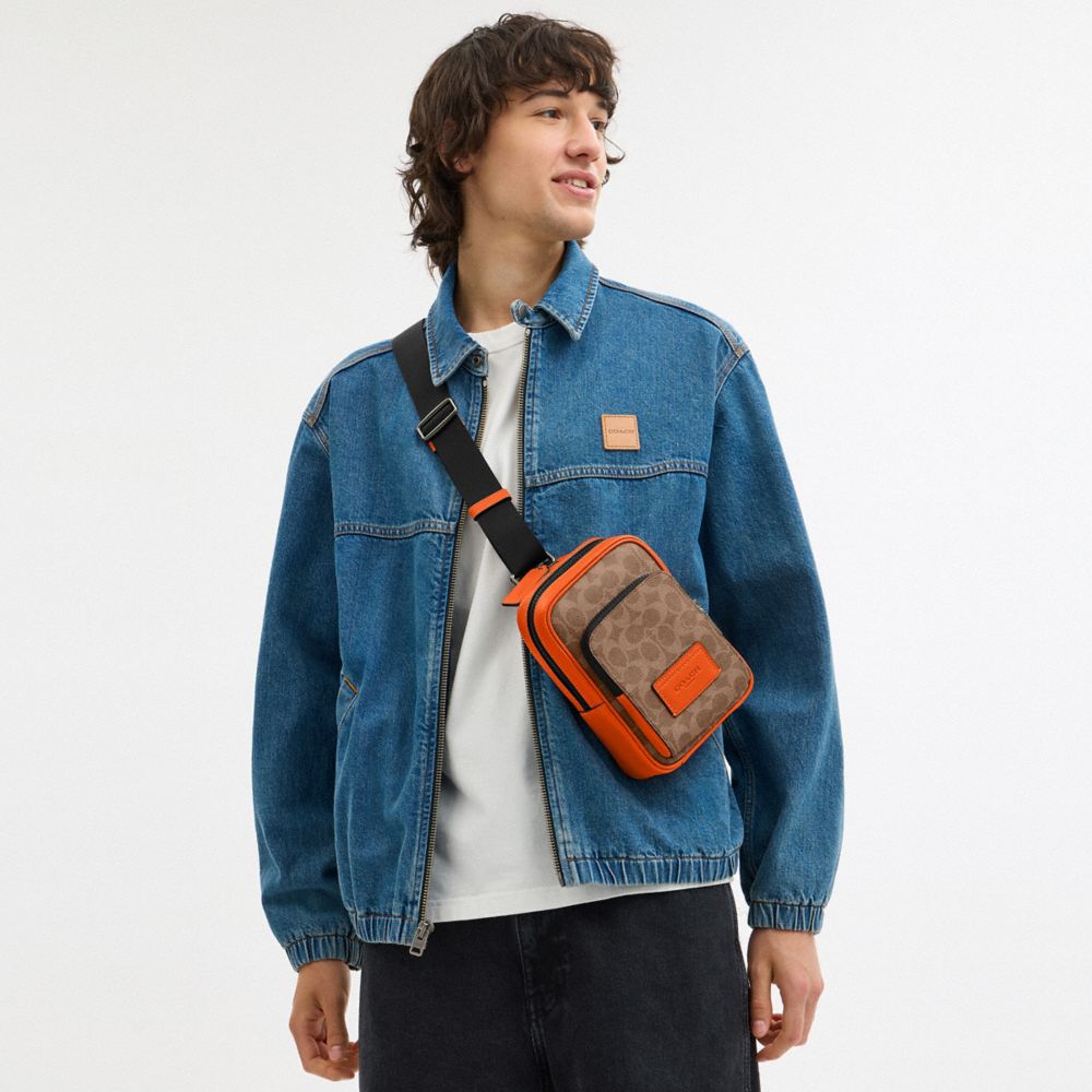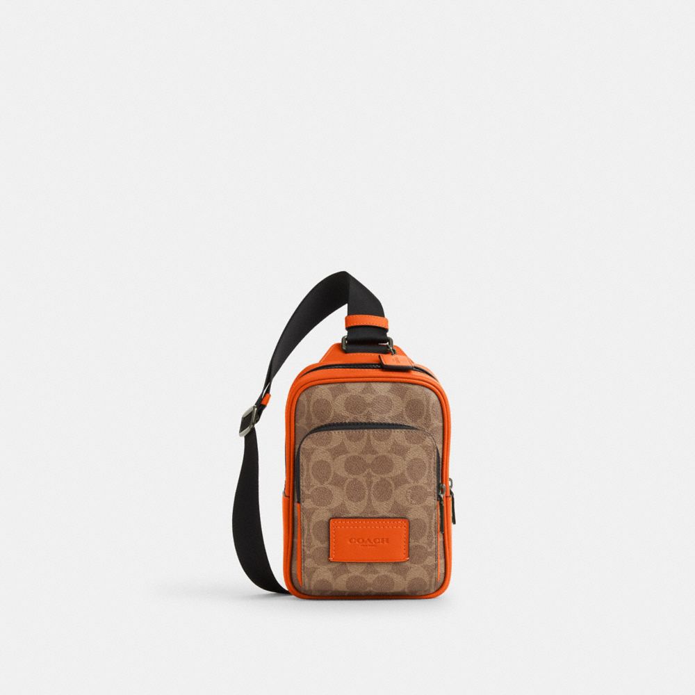 COACH FACTORY OUTLET PRICE CHART - CAJ38 - RACER SLING PACK IN COLORBLOCK SIGNATURE CANVAS - QB/TAN/SPICE ORANGE