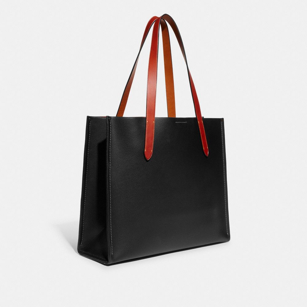 | Polished pebble leather, vegetable-tanned leather and Signature coated canvas | Inside zip pocket | Magnetic snap closure | Handles with 10 1/4" drop | Four protective feet at base | Fits a 16" laptop | 16 1/4" (L) x 13 3/4" (H) x 6" (W)|Style No. CH766|