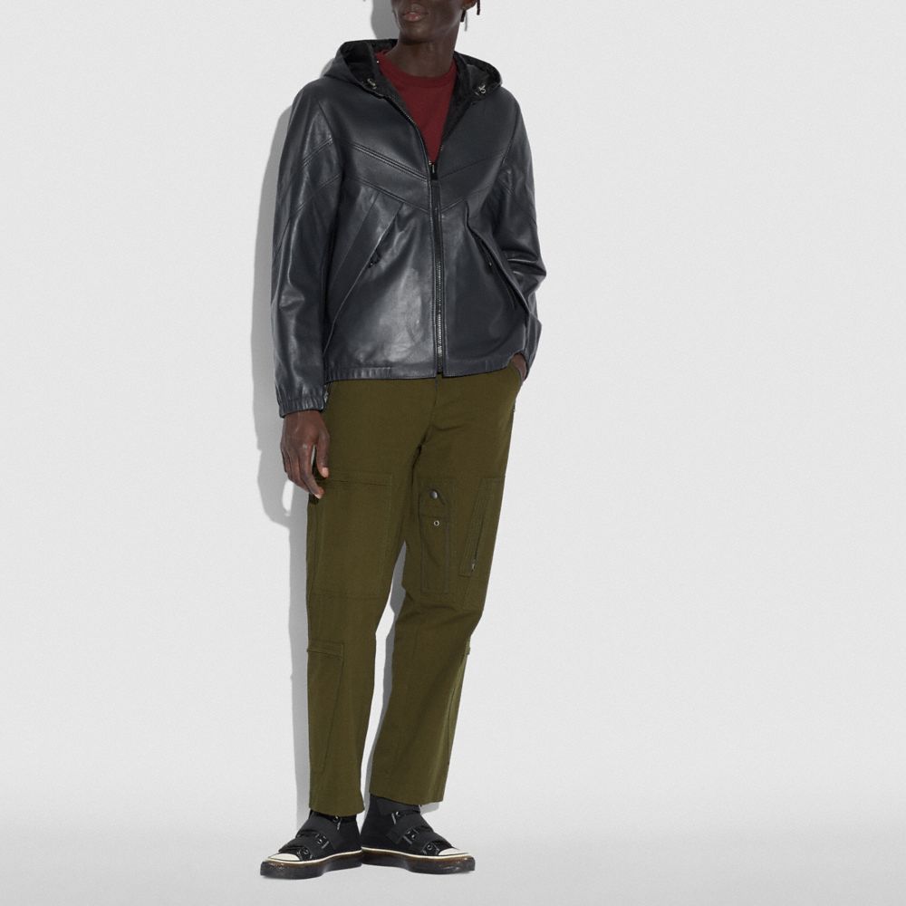 | 100% lamb leather; 100% nylon | Zip closure | Zip pockets | Reversible | Length: 26 1/2" | Clean by leather specialist | Model is 6'2" (188cm) and wears a size M|Style No. 97829|