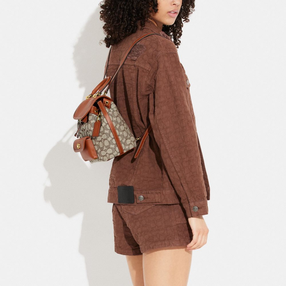 COACH FACTORY OUTLET PRICE CHART - CH591 - RIYA BACKPACK 21 IN SIGNATURE TEXTILE JACQUARD - BRASS/COCOA BURNISHED AMB