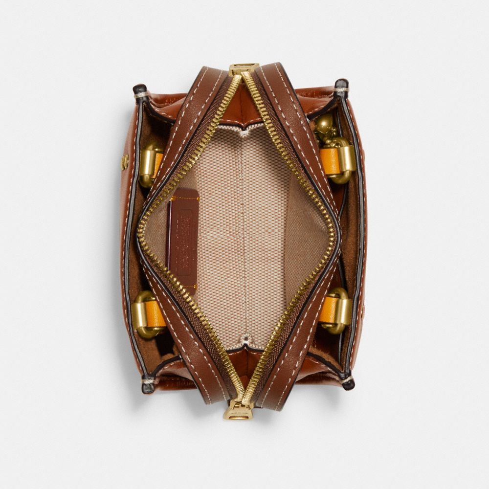 | Signature textile jacquard, glovetanned leather and nappa leather | Zip closure, fabric and suede lining | Two open compartments | Handles with 1 3/4" drop | Detachable strap with 21 1/2" drop for shoulder or crossbody wear | Four protective feet at base | 4 1/2" (L) x 3 3/4" (H) x 2 3/4" (W)|Style No. CC515|