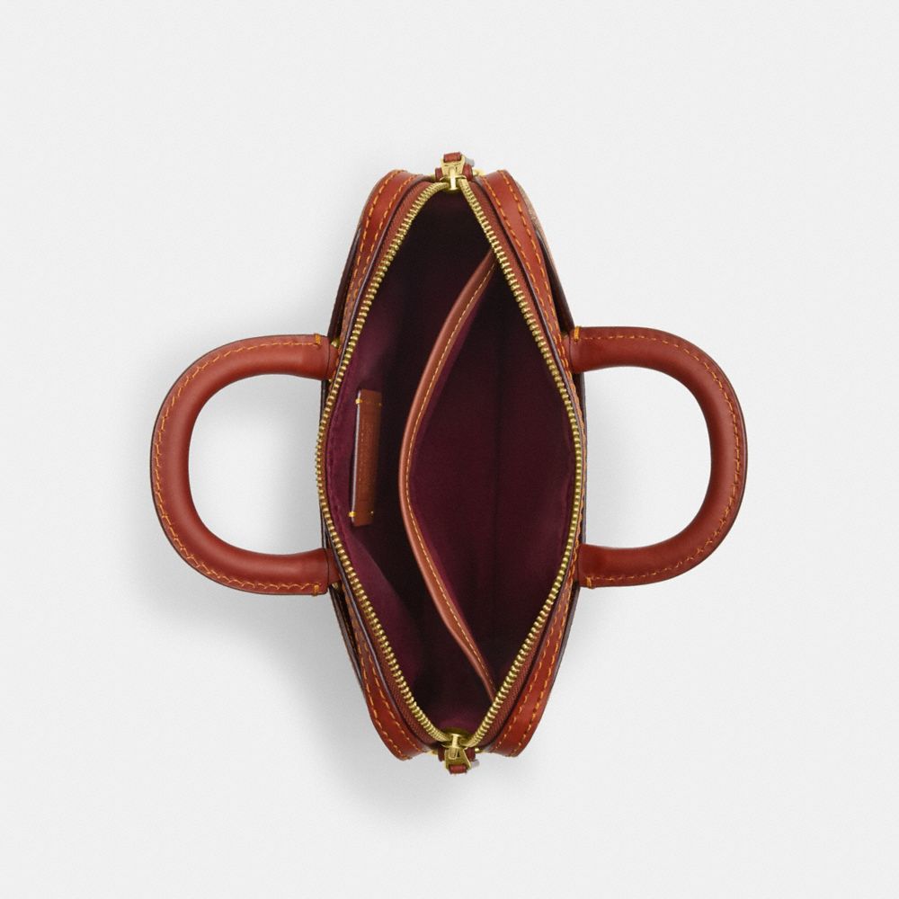 | Signature coated canvas and vegetable leather | Inside multifunction pocket | Zip closure, fabric lining | Handles with 4" drop | Side slip pockets | Detachable strap with 19 3/4" drop for shoulder or crossbody wear | 9 3/4" (L) x 6 3/4" (H) x 1 1/2" (W)|Style No. CQ771|