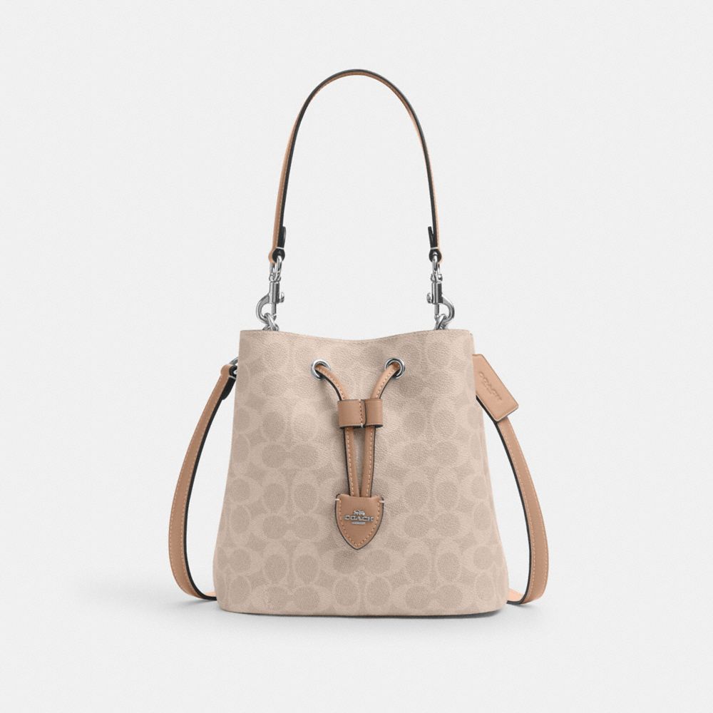 COACH FACTORY OUTLET PRICE CHART - CBH07 - ROWAN BUCKET BAG IN SIGNATURE CANVAS - SILVER/SAND/TAUPE