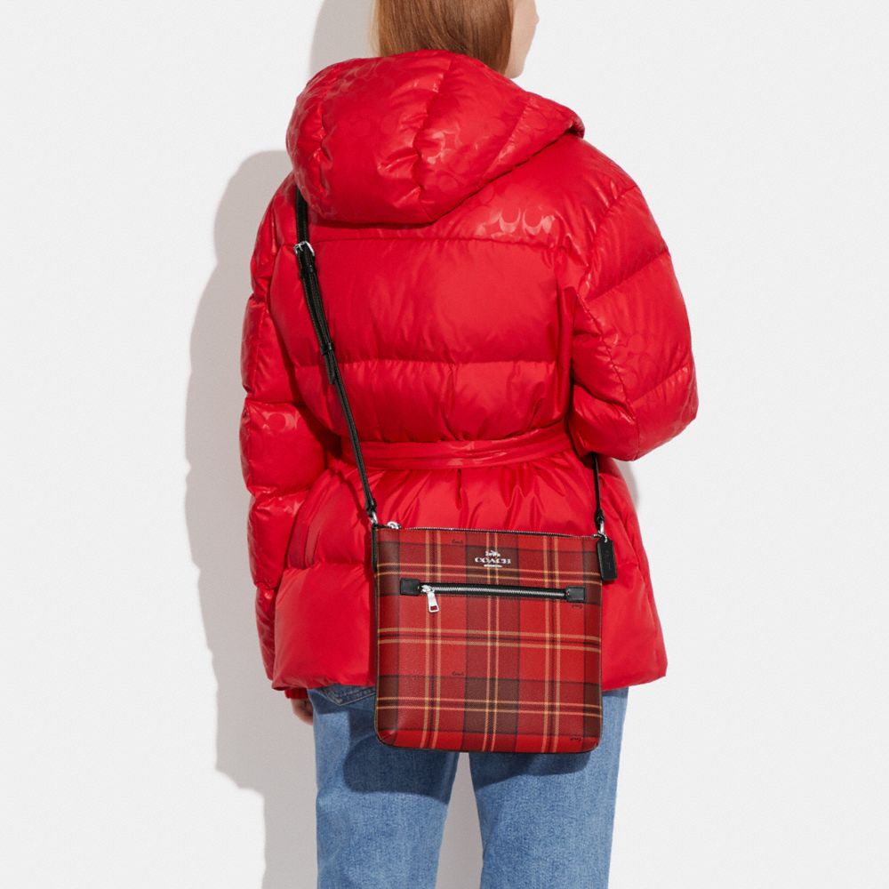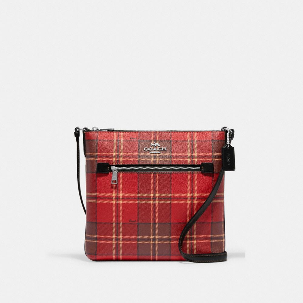 COACH FACTORY OUTLET PRICE CHART - CC924 - ROWAN FILE BAG WITH TARTAN PLAID PRINT - SV/RED/BLACK MULTI