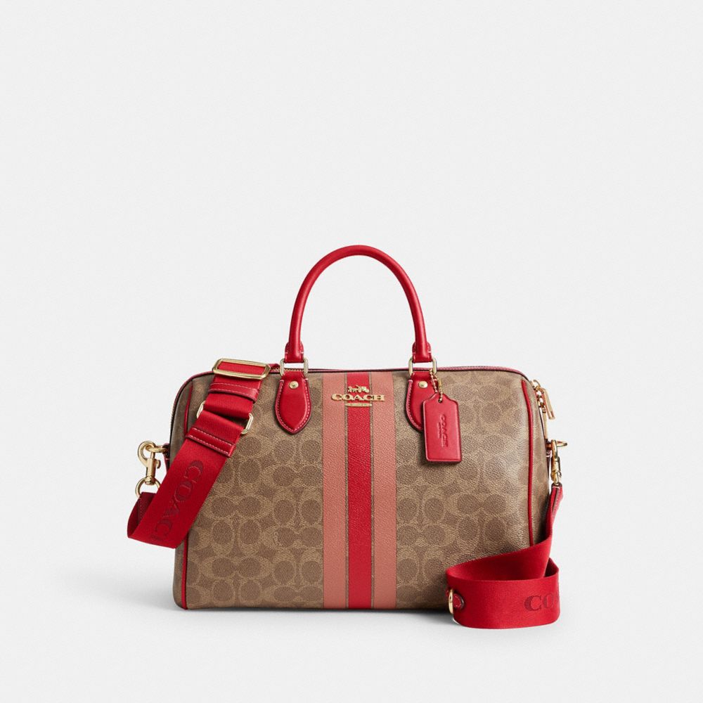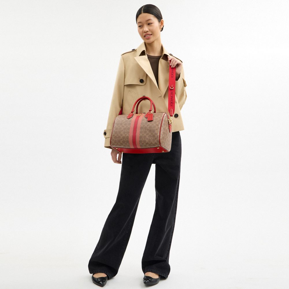 ROWAN LARGE SATCHEL BAG IN SIGNATURE CANVAS WITH STRIPE (COACH CAL83)