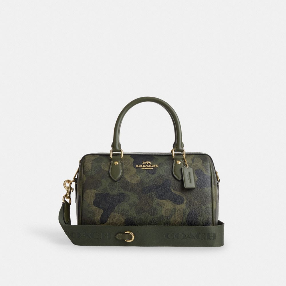 COACH FACTORY OUTLET PRICE CHART - CV952 - ROWAN SATCHEL BAG IN SIGNATURE CAMO PRINT - GOLD/DARK CYPRESS MULTI
