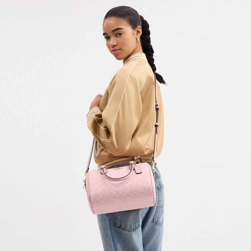 COACH FACTORY OUTLET PRICE CHART - CV961 - ROWAN SATCHEL BAG IN SIGNATURE CANVAS - GOLD/POWDER PINK
