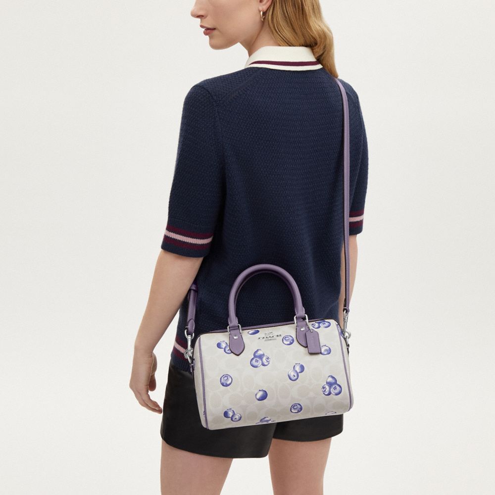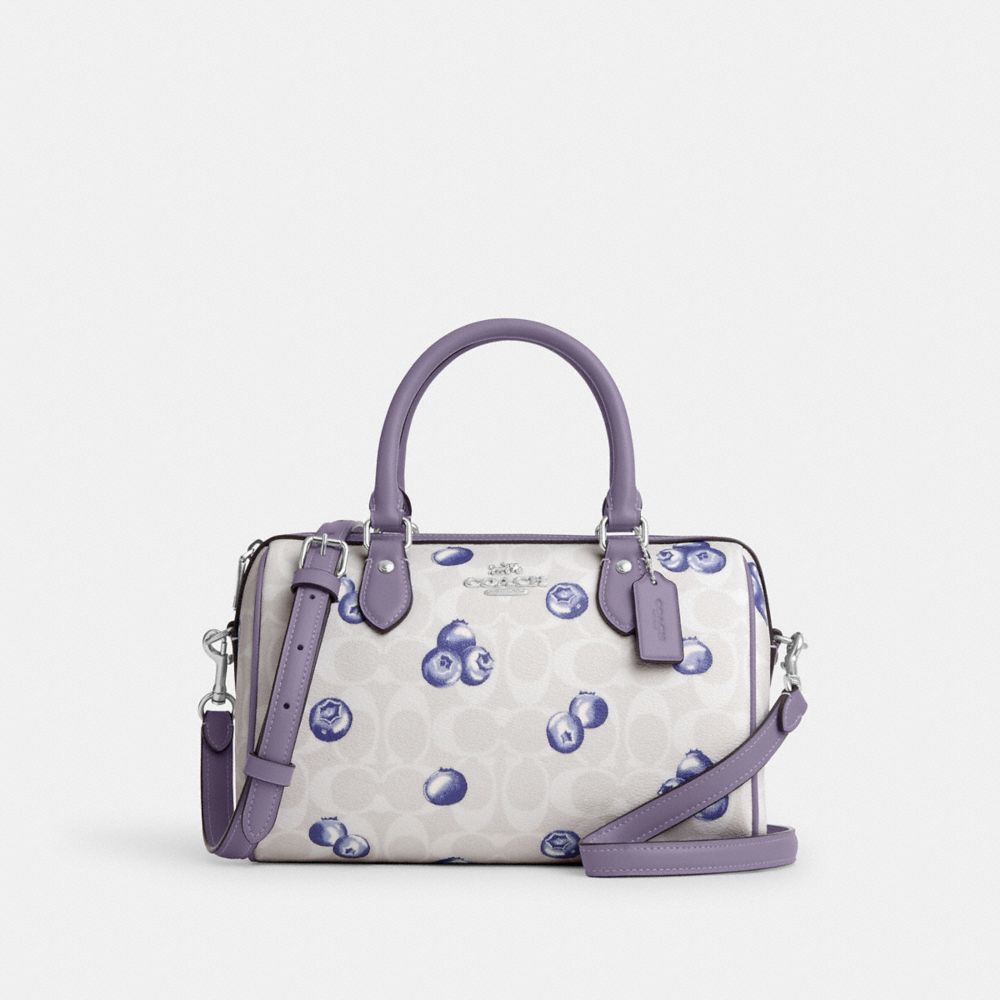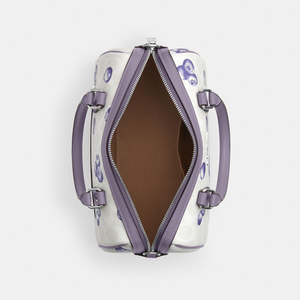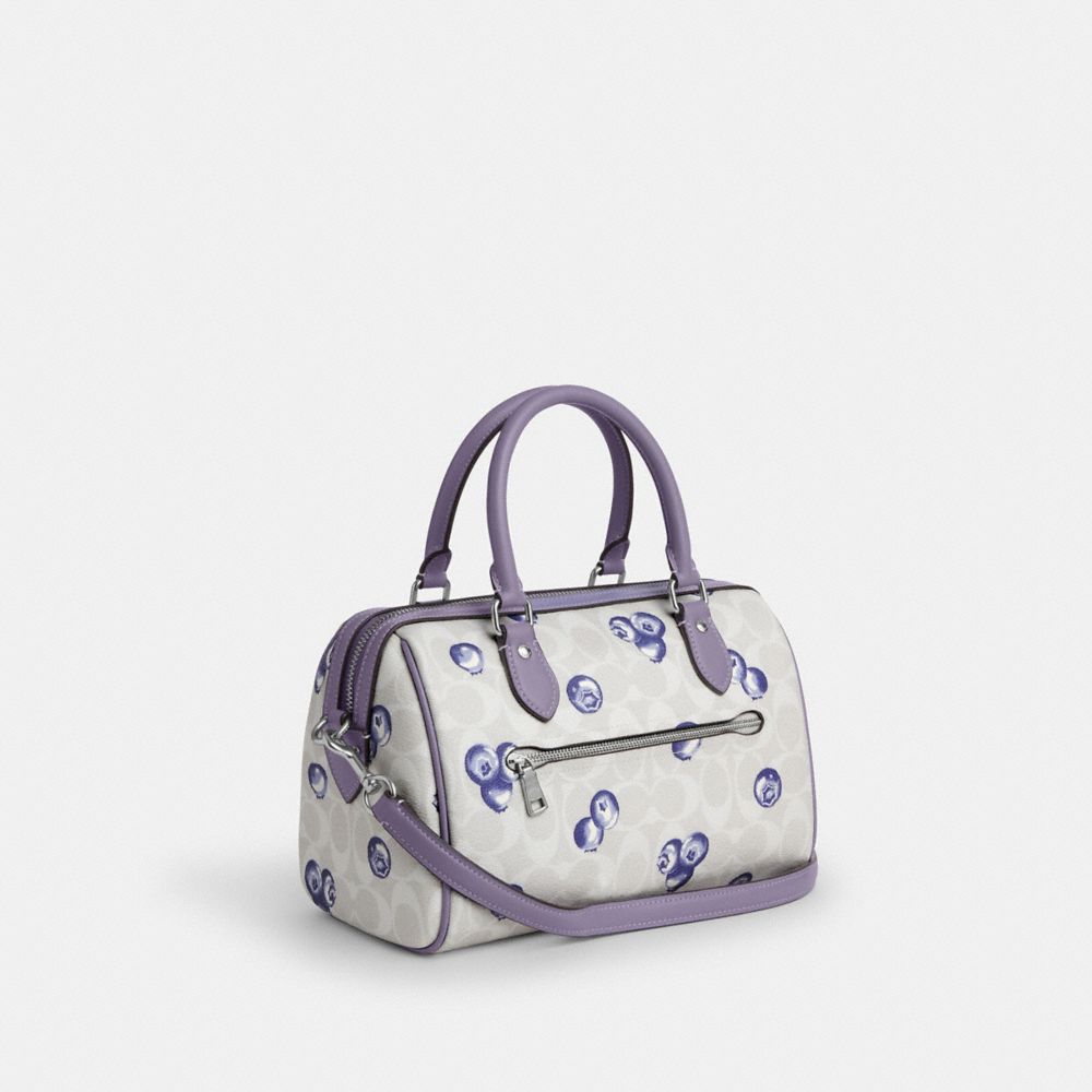 COACH FACTORY OUTLET PRICE CHART - CT216 - ROWAN SATCHEL BAG IN SIGNATURE CANVAS WITH BLUEBERRY PRINT - SILVER/CHALK/LIGHT VIOLET