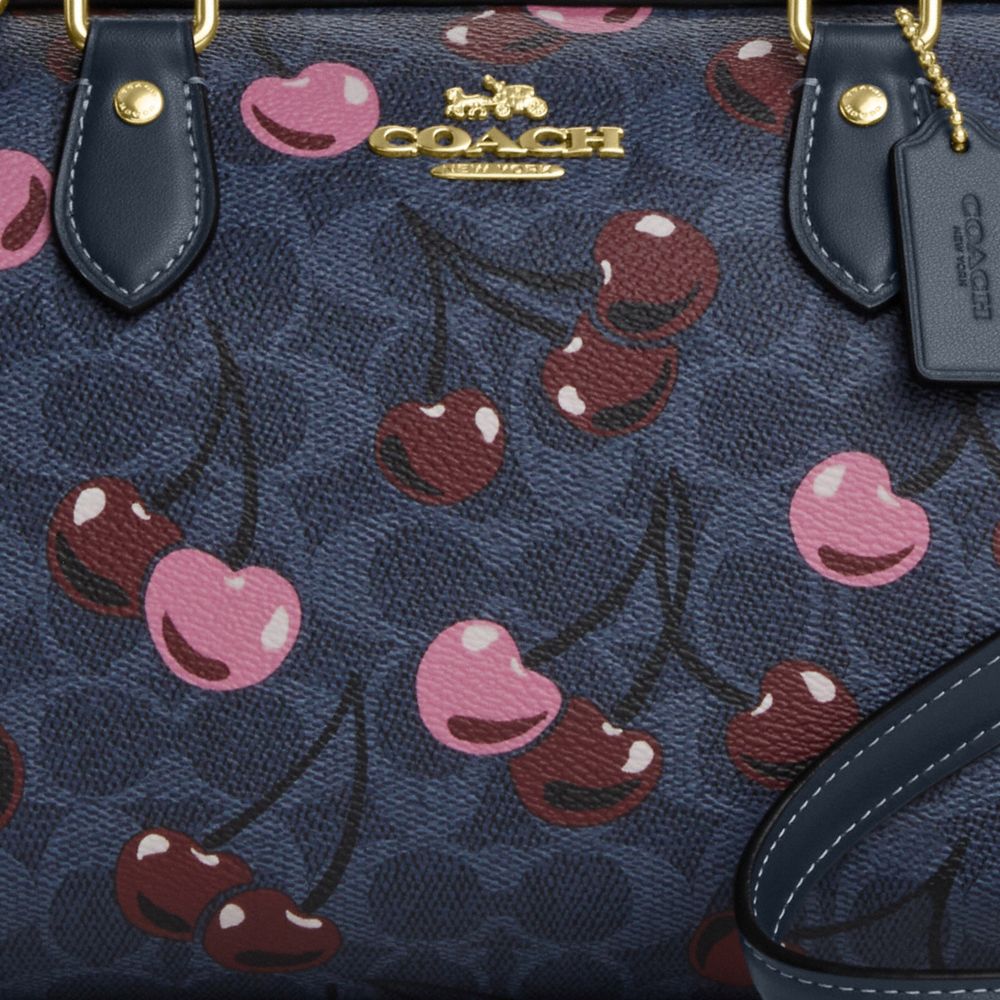 COACH FACTORY OUTLET PRICE CHART - CY692 - ROWAN SATCHEL BAG IN SIGNATURE CANVAS WITH CHERRY PRINT - GOLD/DENIM MULTI