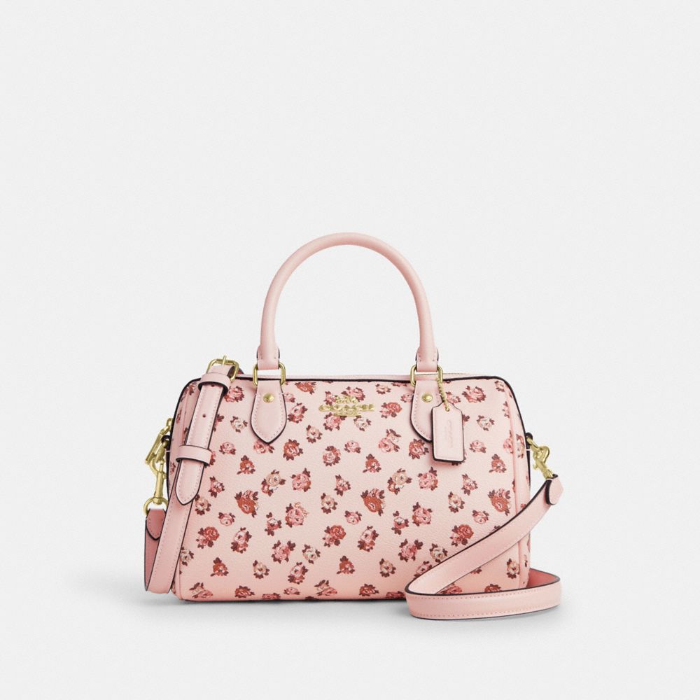 COACH FACTORY OUTLET PRICE CHART - CY681 - ROWAN SATCHEL BAG WITH ROSE PRINT - GOLD/BLUSH MULTI