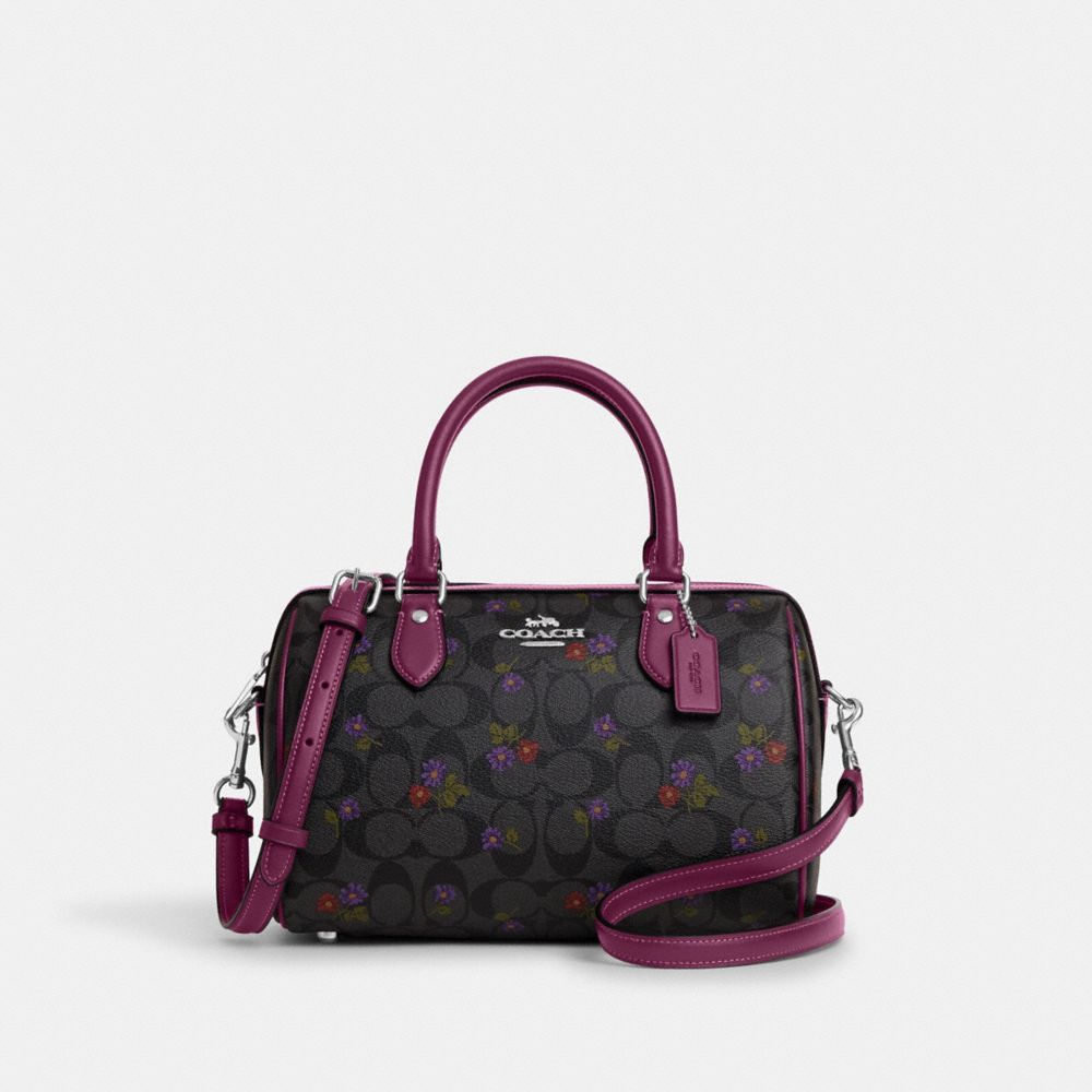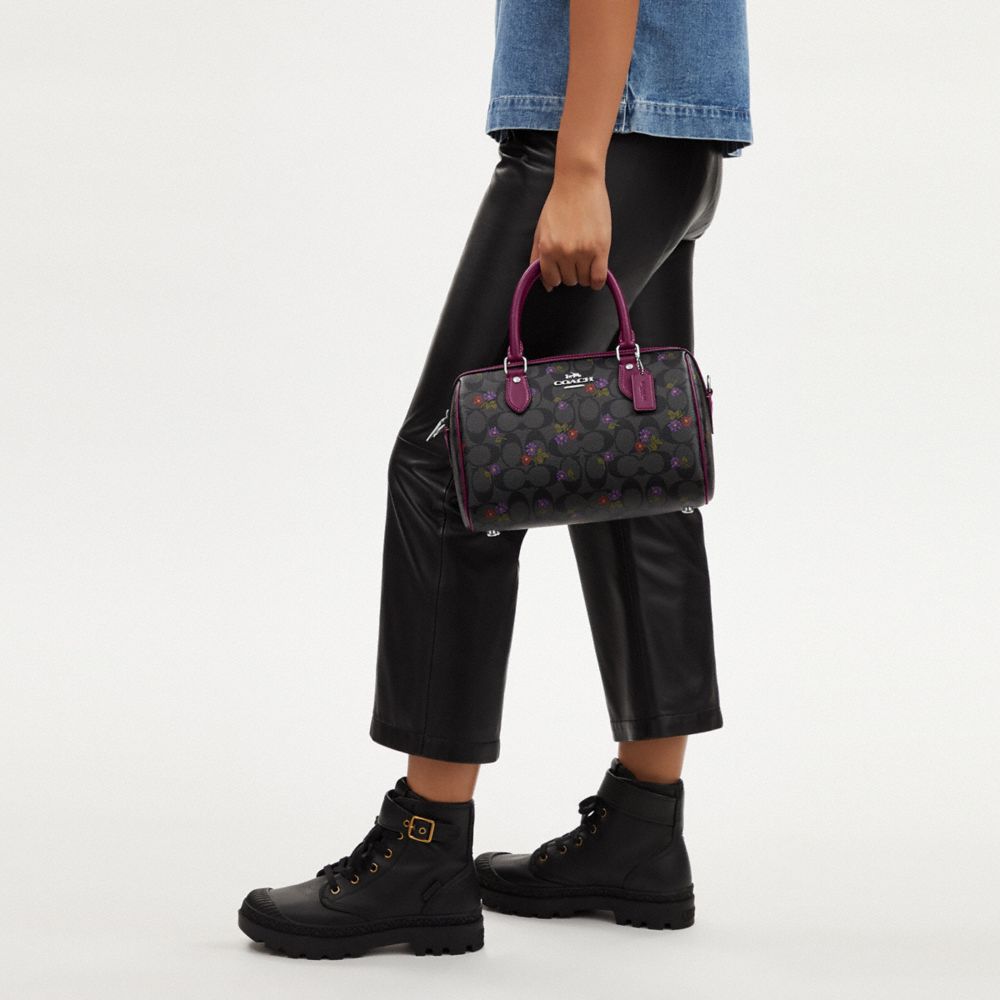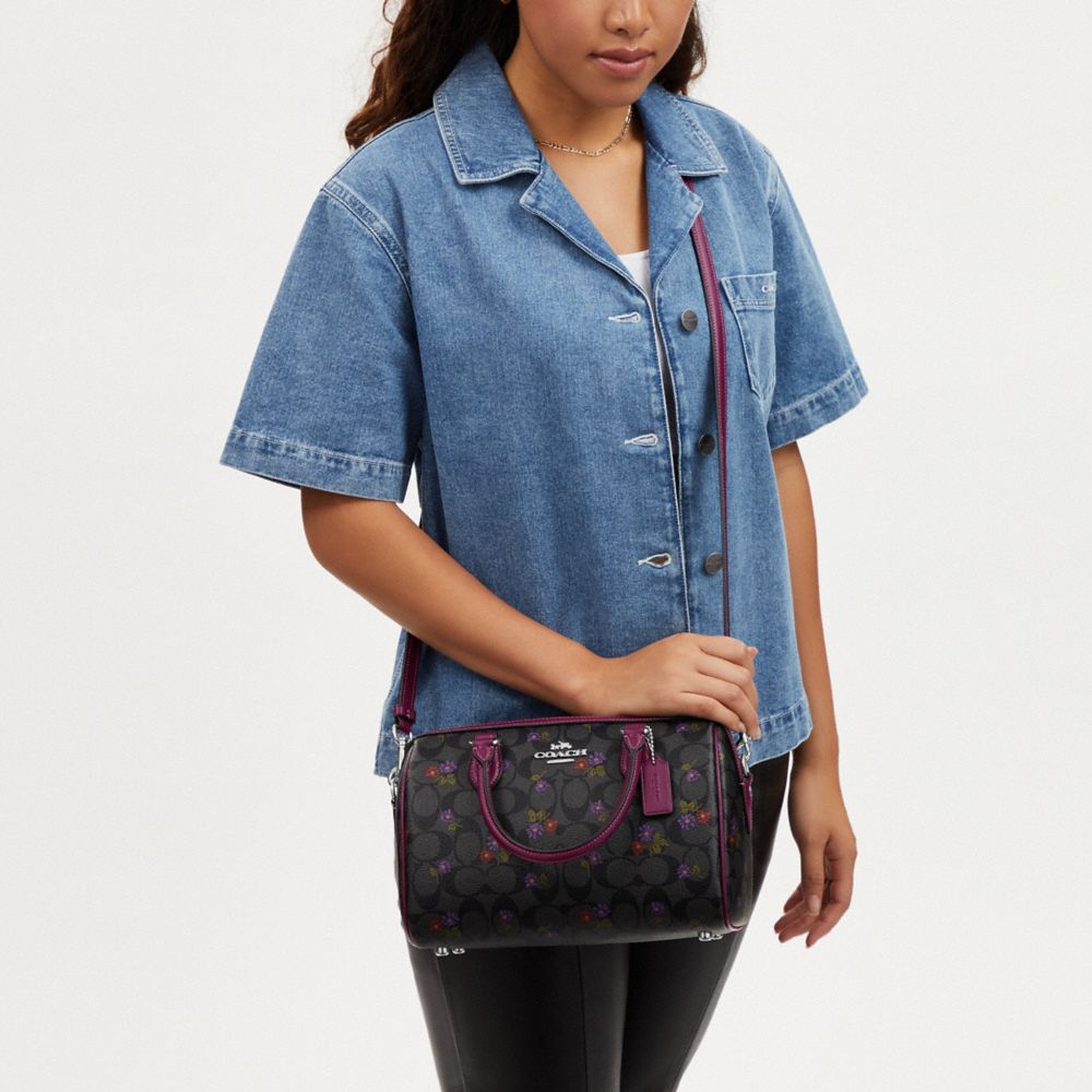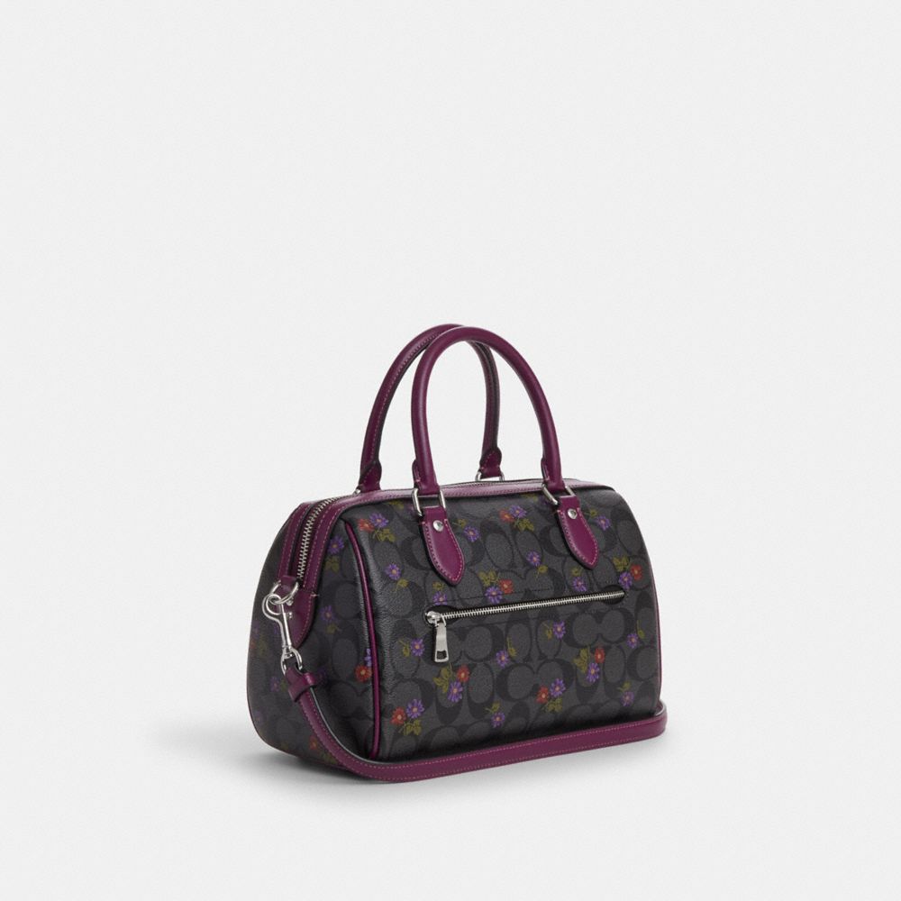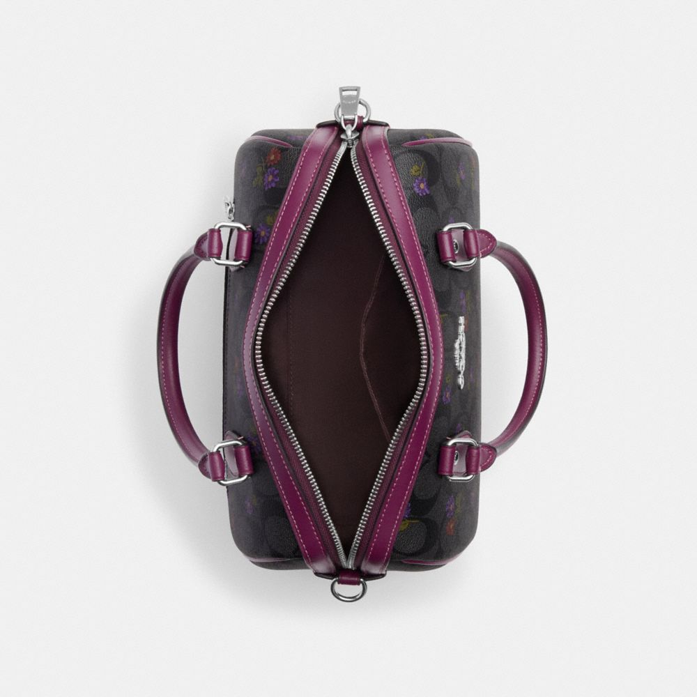 COACH FACTORY OUTLET PRICE CHART - CM740 - ROWAN SATCHEL IN SIGNATURE CANVAS WITH COUNTRY FLORAL PRINT - SILVER/GRAPHITE/DEEP BERRY