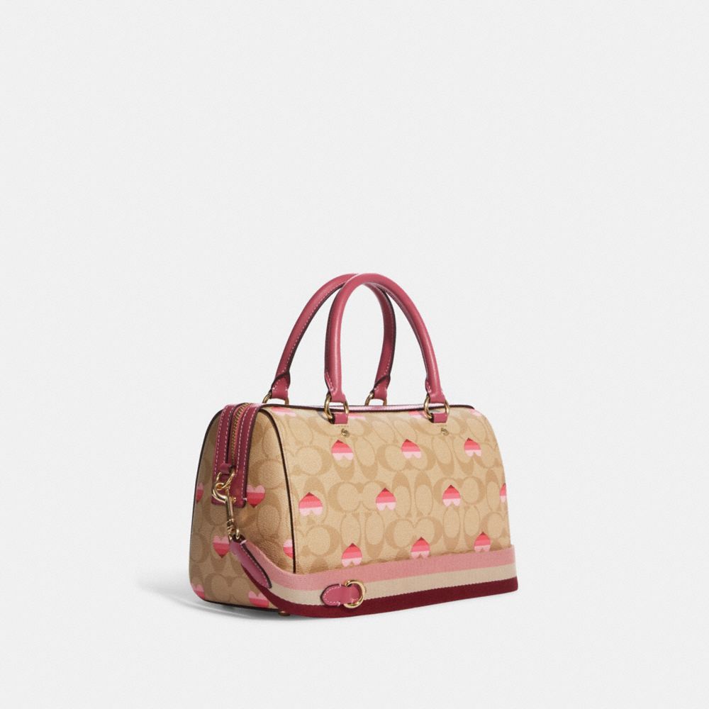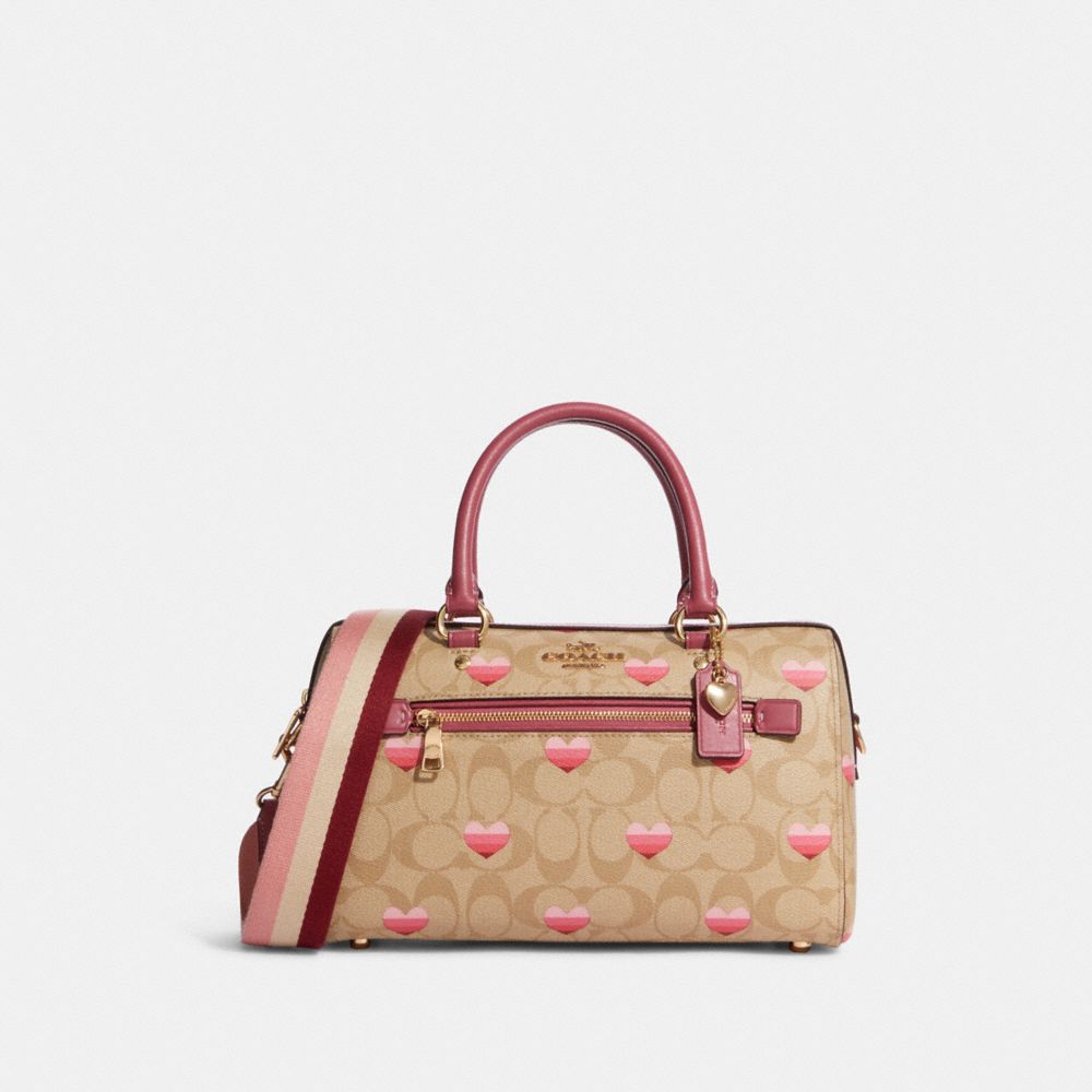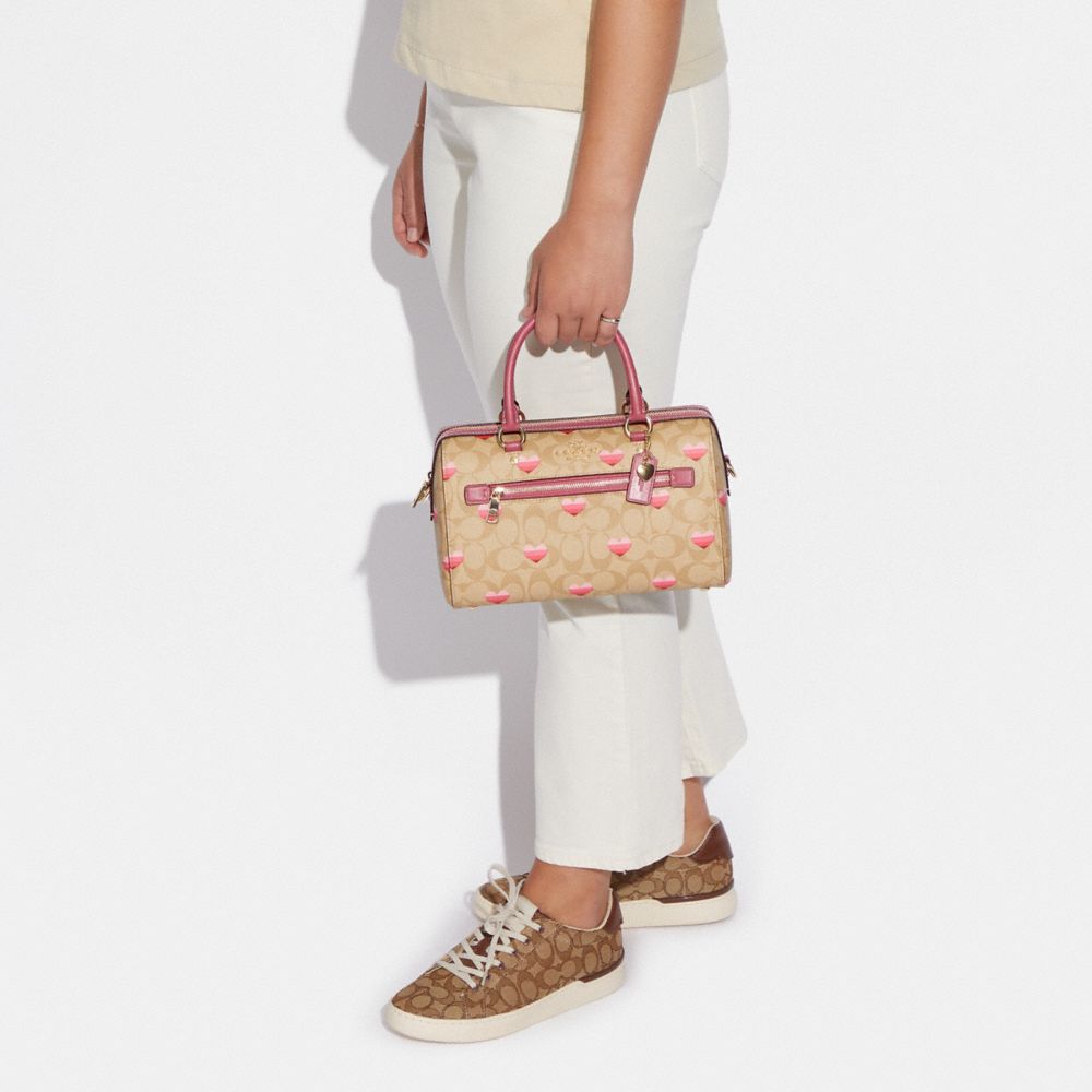 ROWAN SATCHEL IN SIGNATURE CANVAS WITH STRIPE HEART PRINT (COACH CA248)